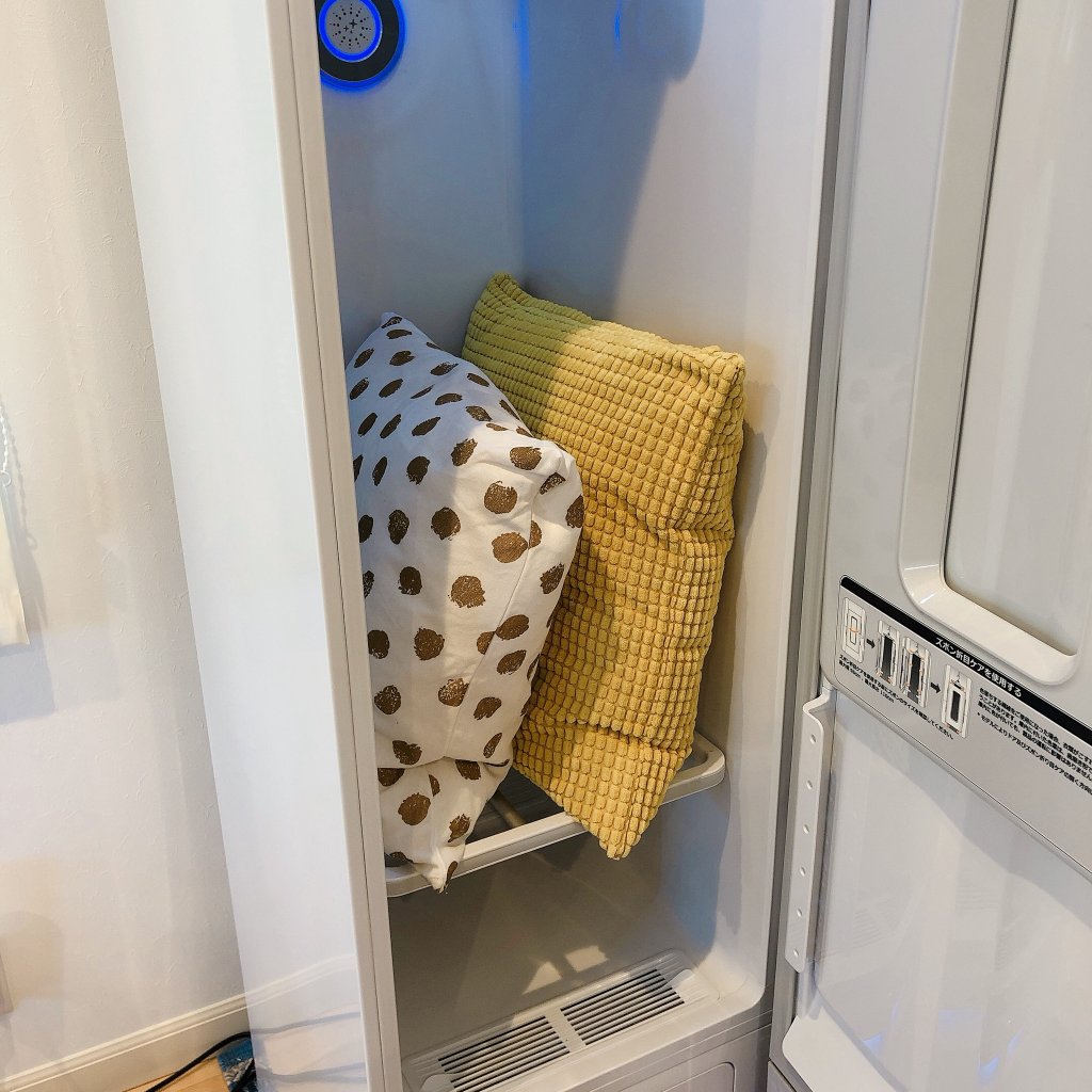 家の布製品を気軽に入れて稼働させておけると思い、我が家はリビングに置いてみました♪