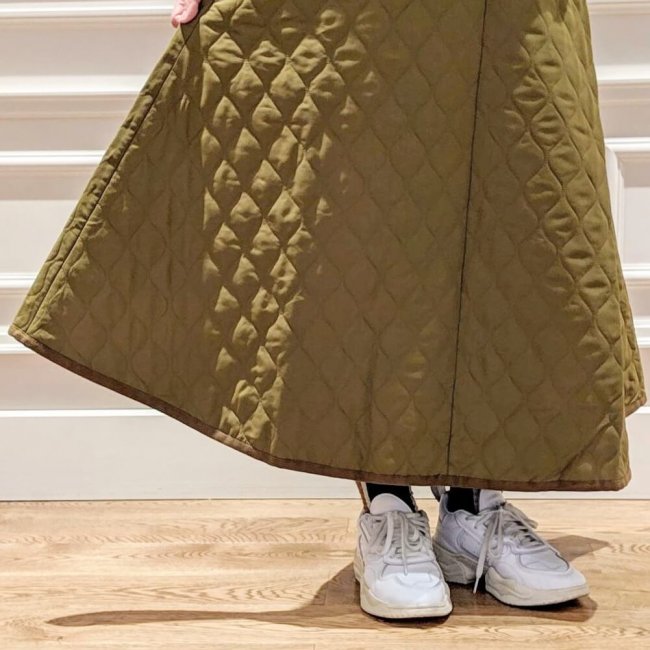 薄ーく中綿の入ったキルティングはしっかりハリがあるので、とにかくフレアのラインが綺麗!
