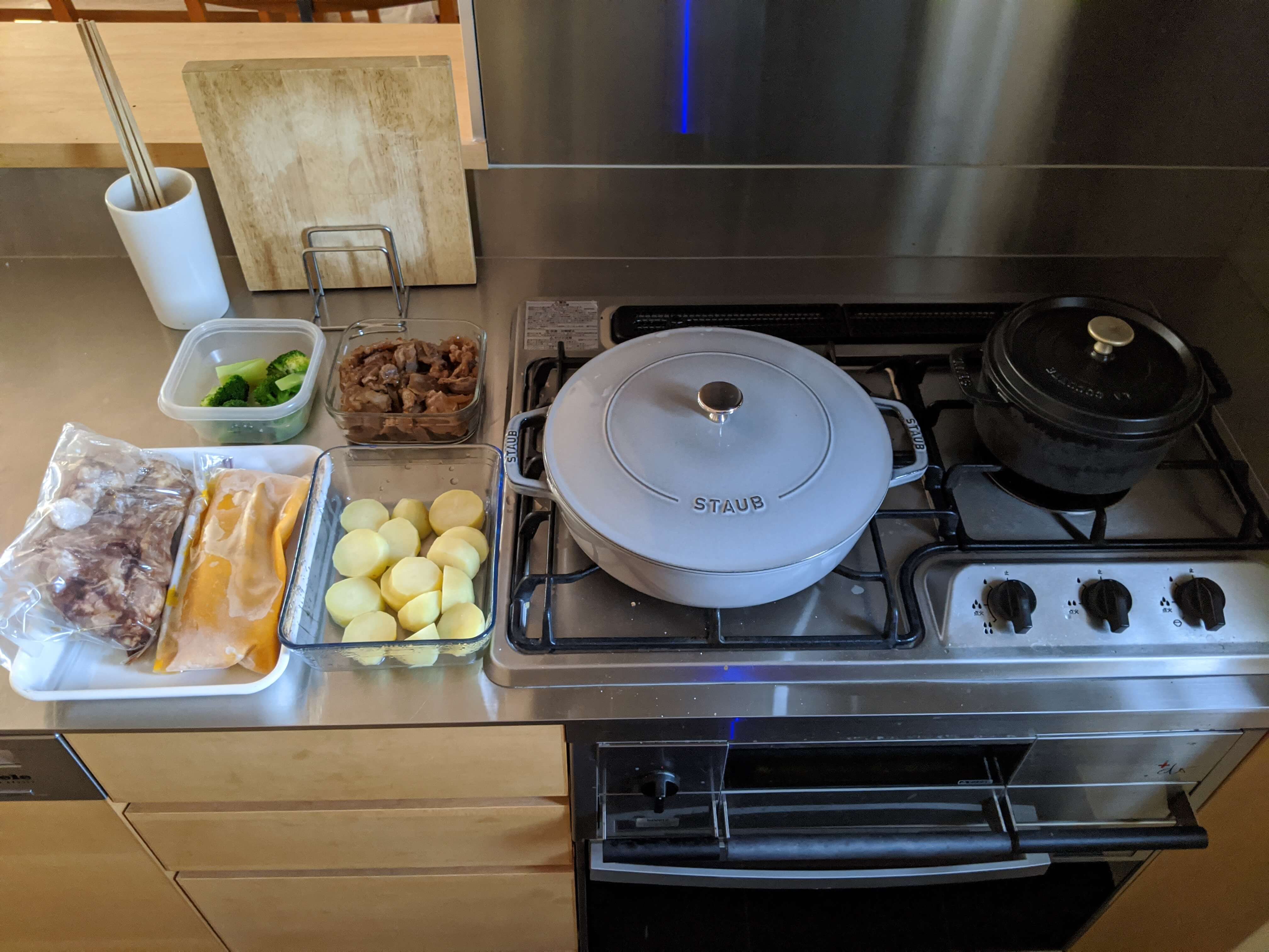 ル・クルーゼの22センチは、カレーやシチュー、スープ系、じゃがいもを蒸すのにも便利です。