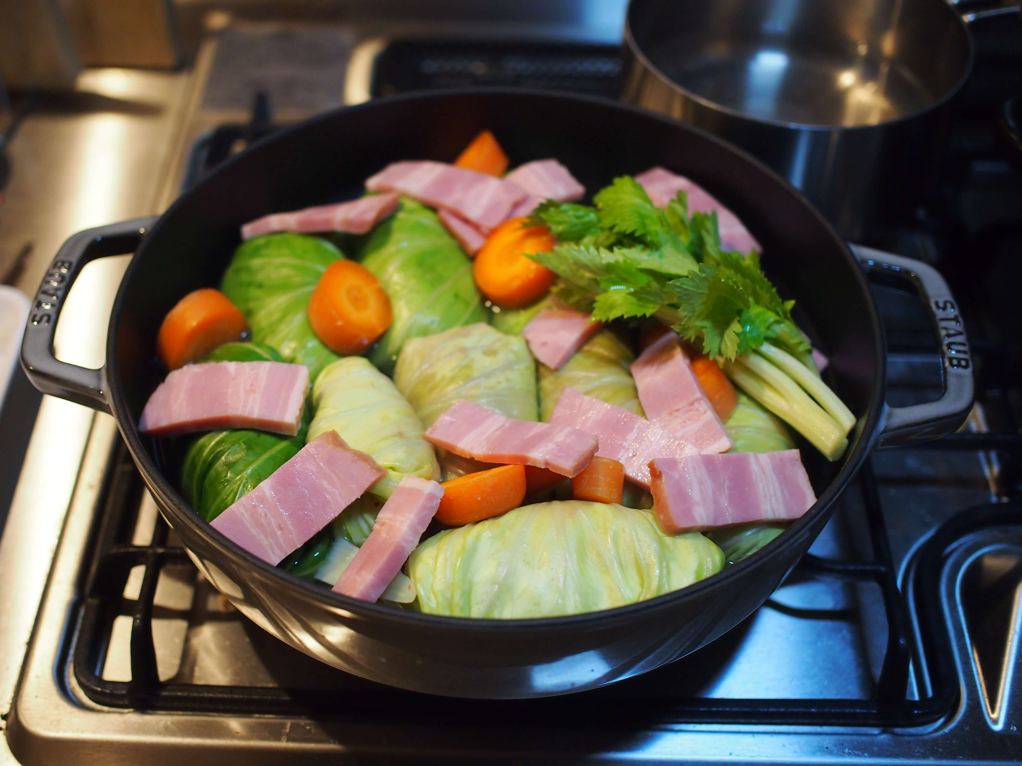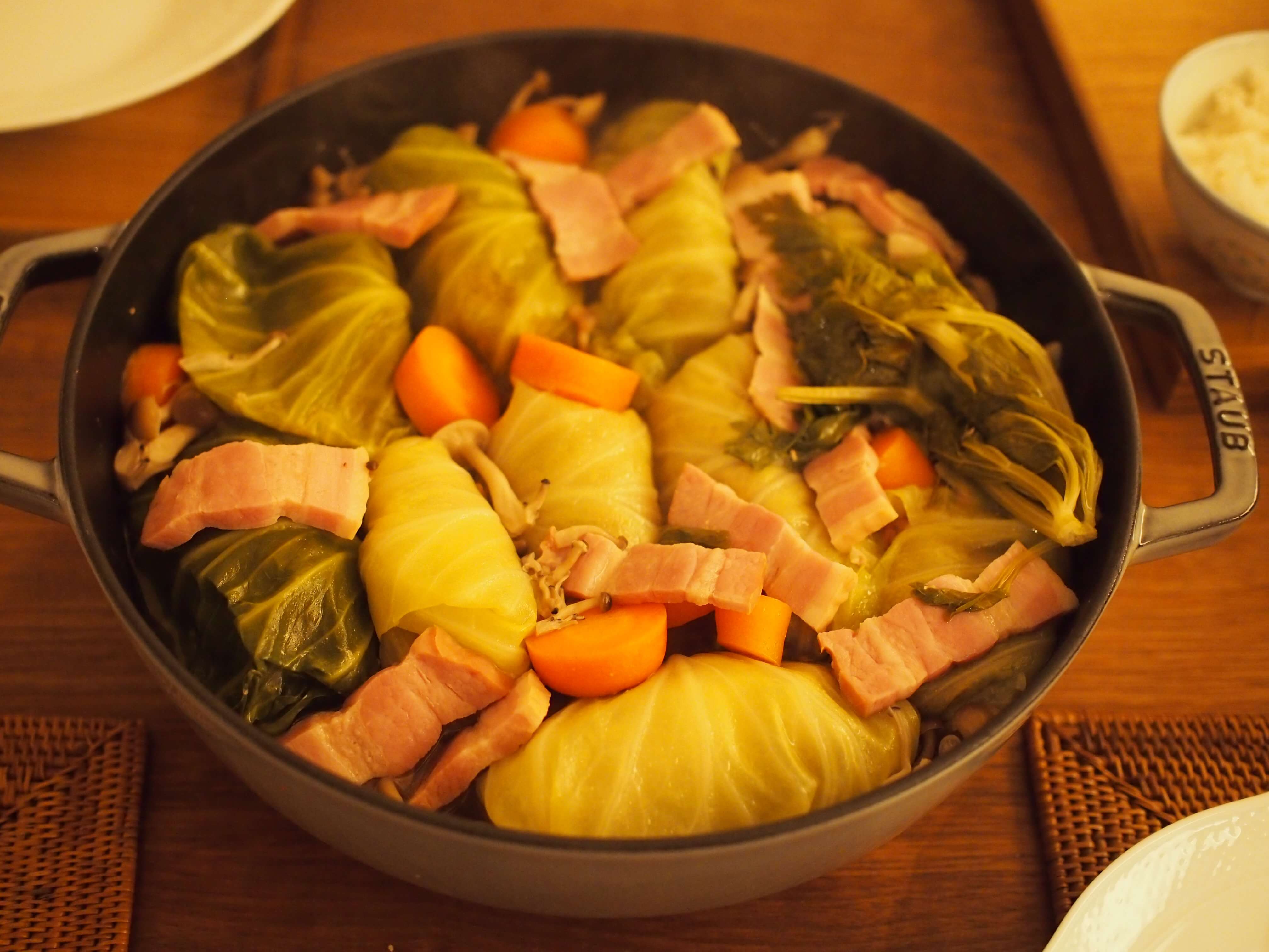 今まで、ル・クルーゼに、二段重ねて置いていたロールキャベツが、平らに置けて、取りやすくなりました。