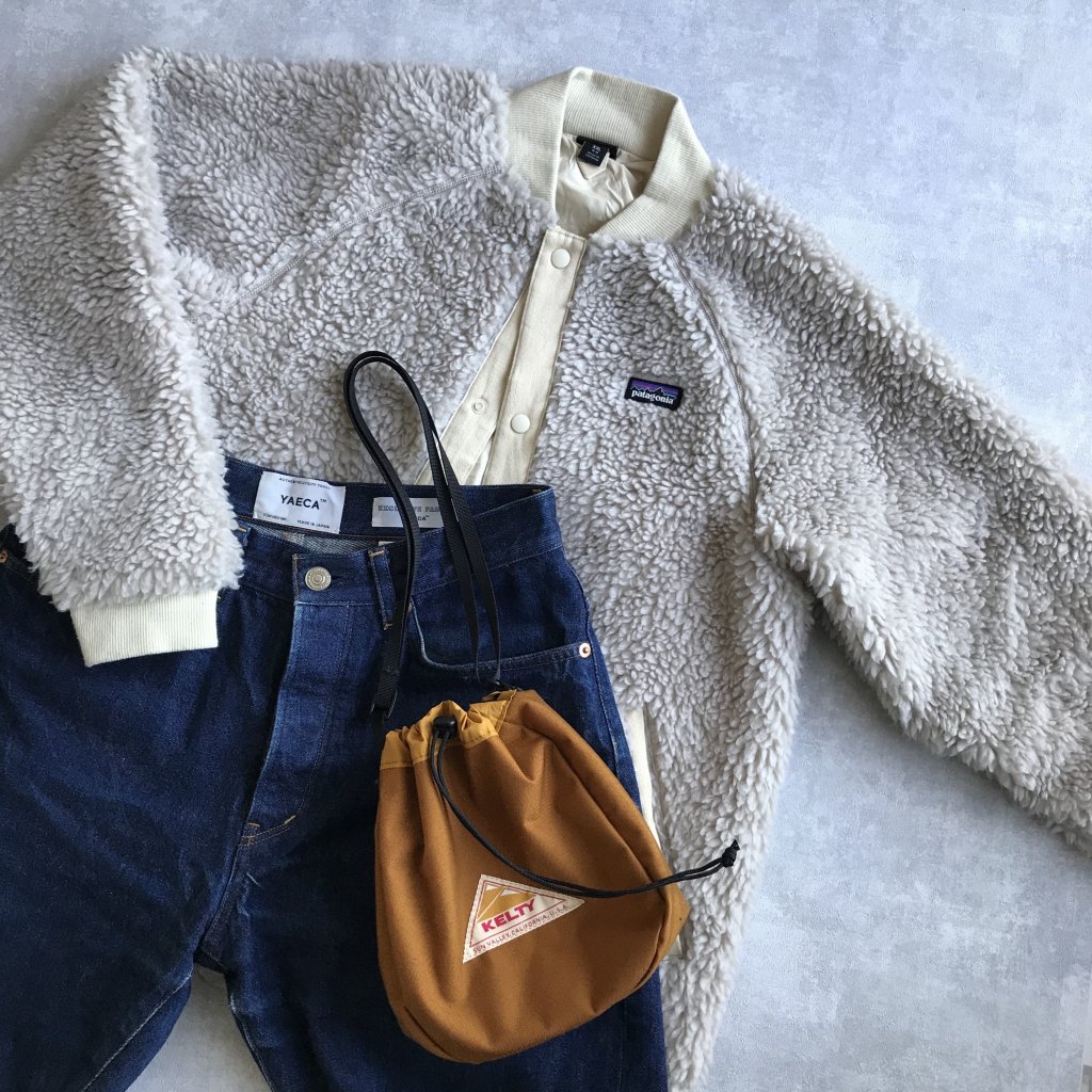バッグは、100人隊に応募したときのお買い物記事に書いた、記念すべき大切なバッグ。カジュアルな巾着バッグって意外と少なくて、重宝しています。ショルダーの長さも自由に変えられるんですよ〜。