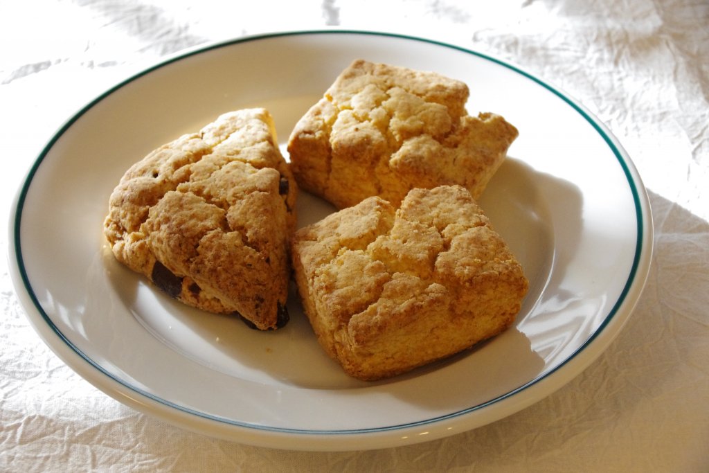 チョコのスコーンは全粒粉入り。ザクザクホロホロ。プレーンはバターの香りが豊かで、まるでクッキーを食べているかのような味わい。