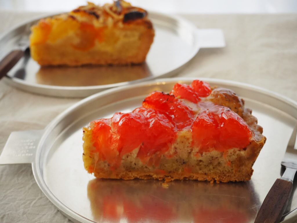 グレープフルーツのタルトは、ヘーゼルナッツの風味がしっかりして。