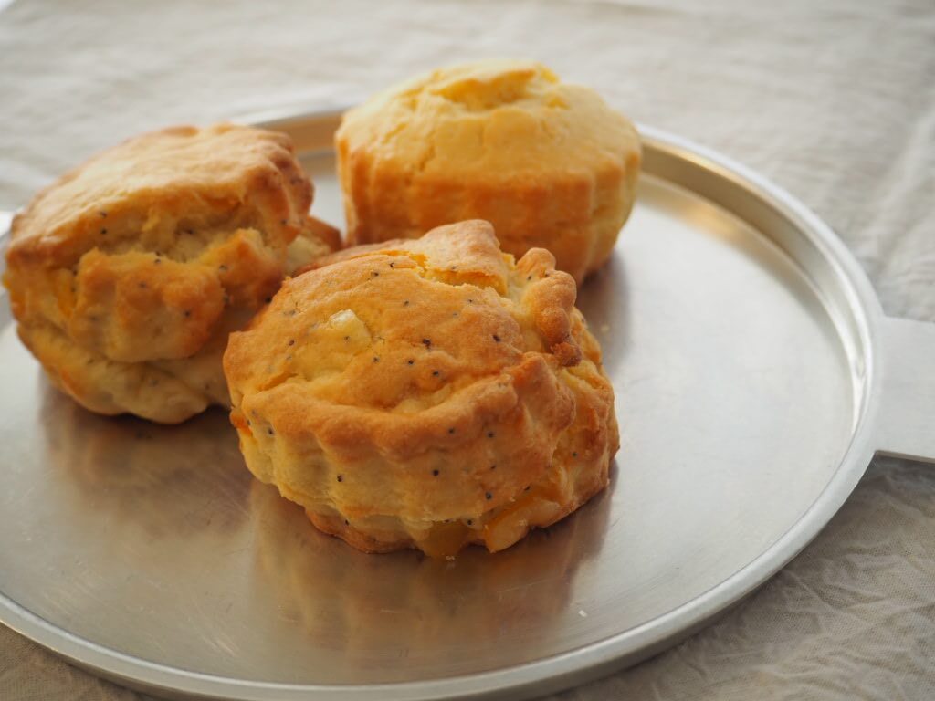 オレンジとポピーのスコーンとプレーンのスコーン。