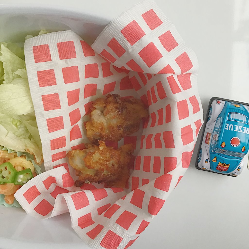 リンドベリのコンテナ、会が始まるまで、蓋して積んどけて便利でした。 唐揚げは2個だけ揚げて、写真撮って、後は食べる直前に揚げました。 夜ご飯は写真撮るのが難しい。