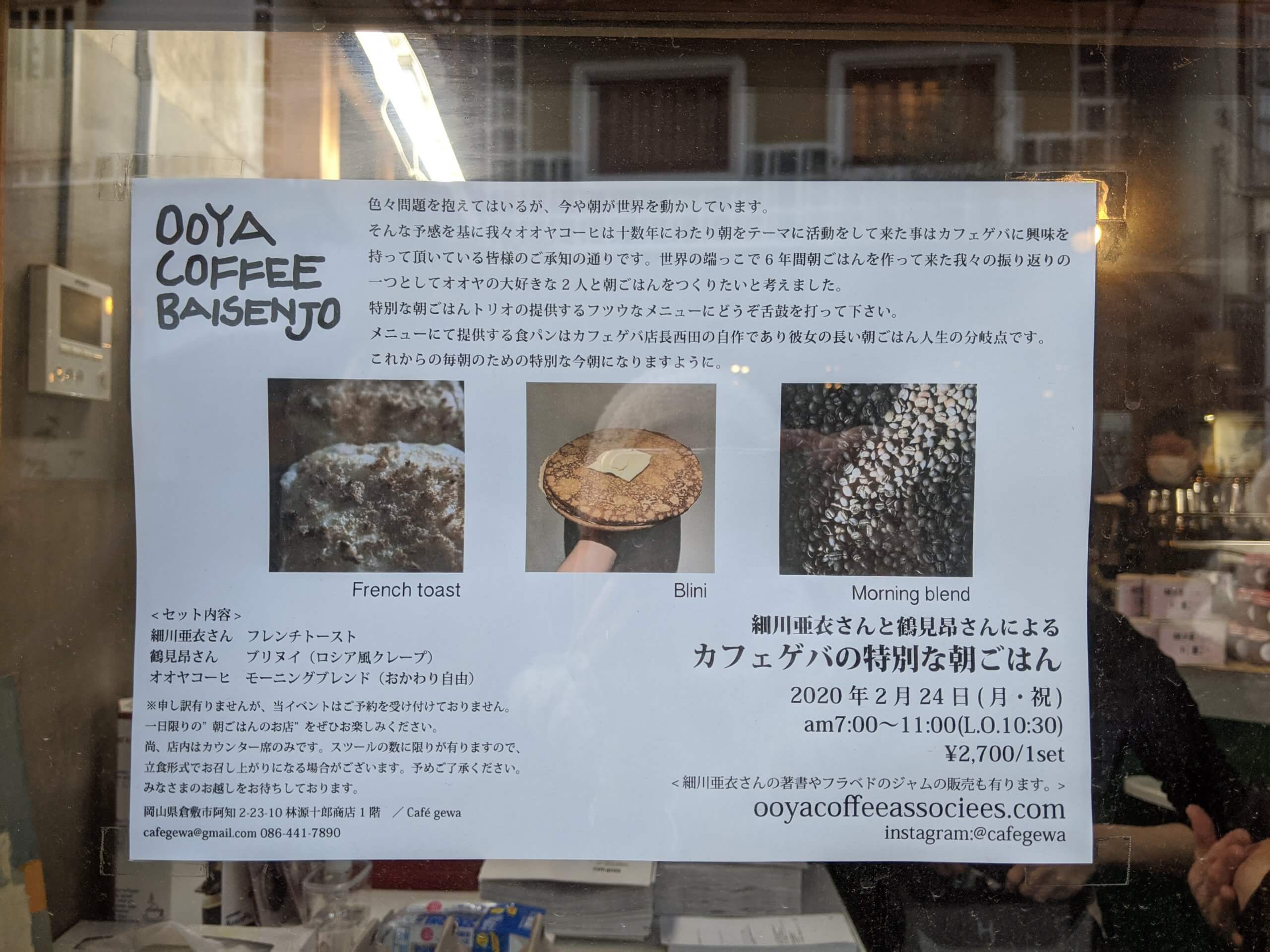 コーヒーは、オオヤコーヒー焙煎所のモーニングブレンドを、おかわり何度も。