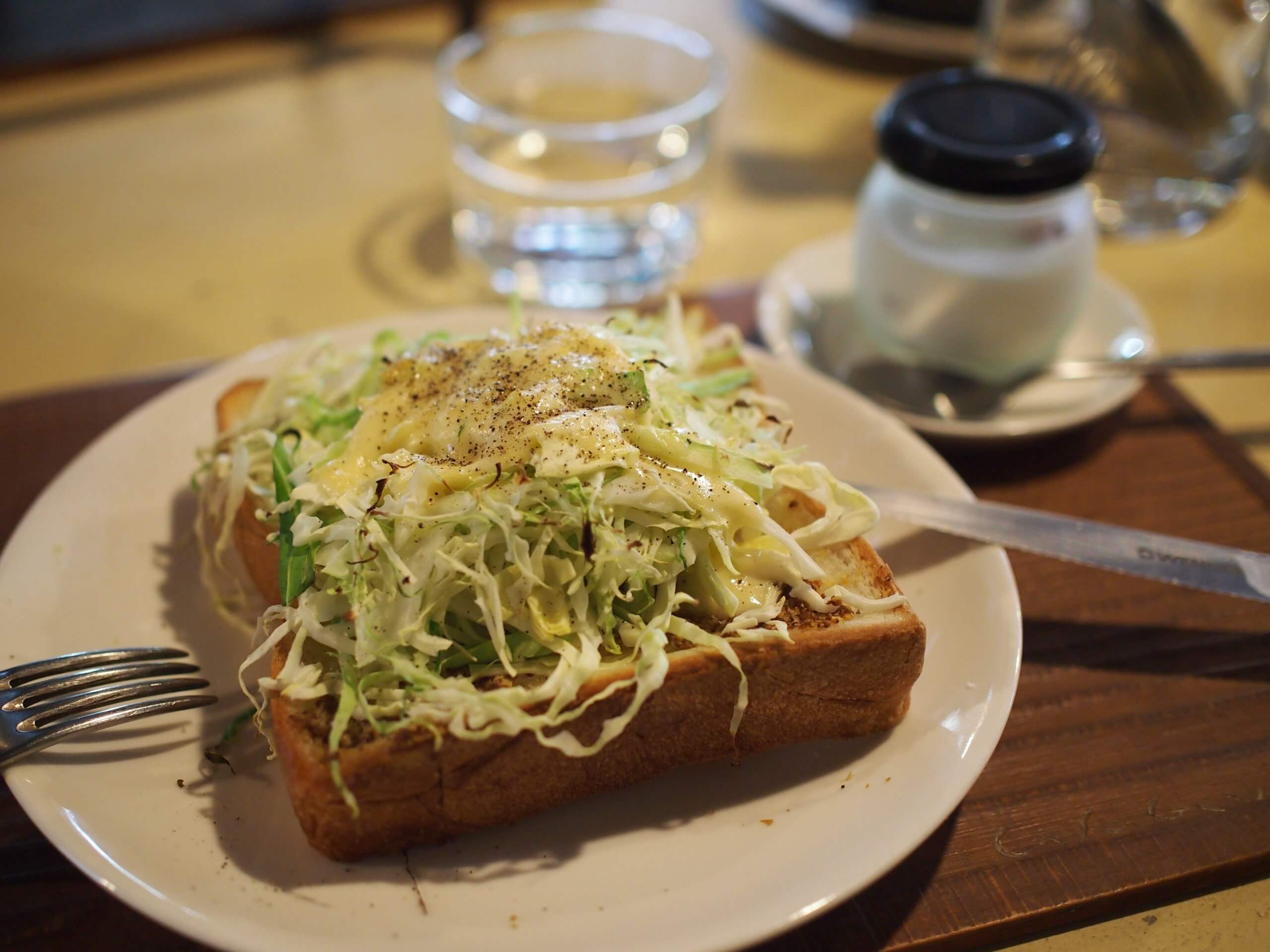 もりもりキャベツと栗ジャムを半分こして食べました。