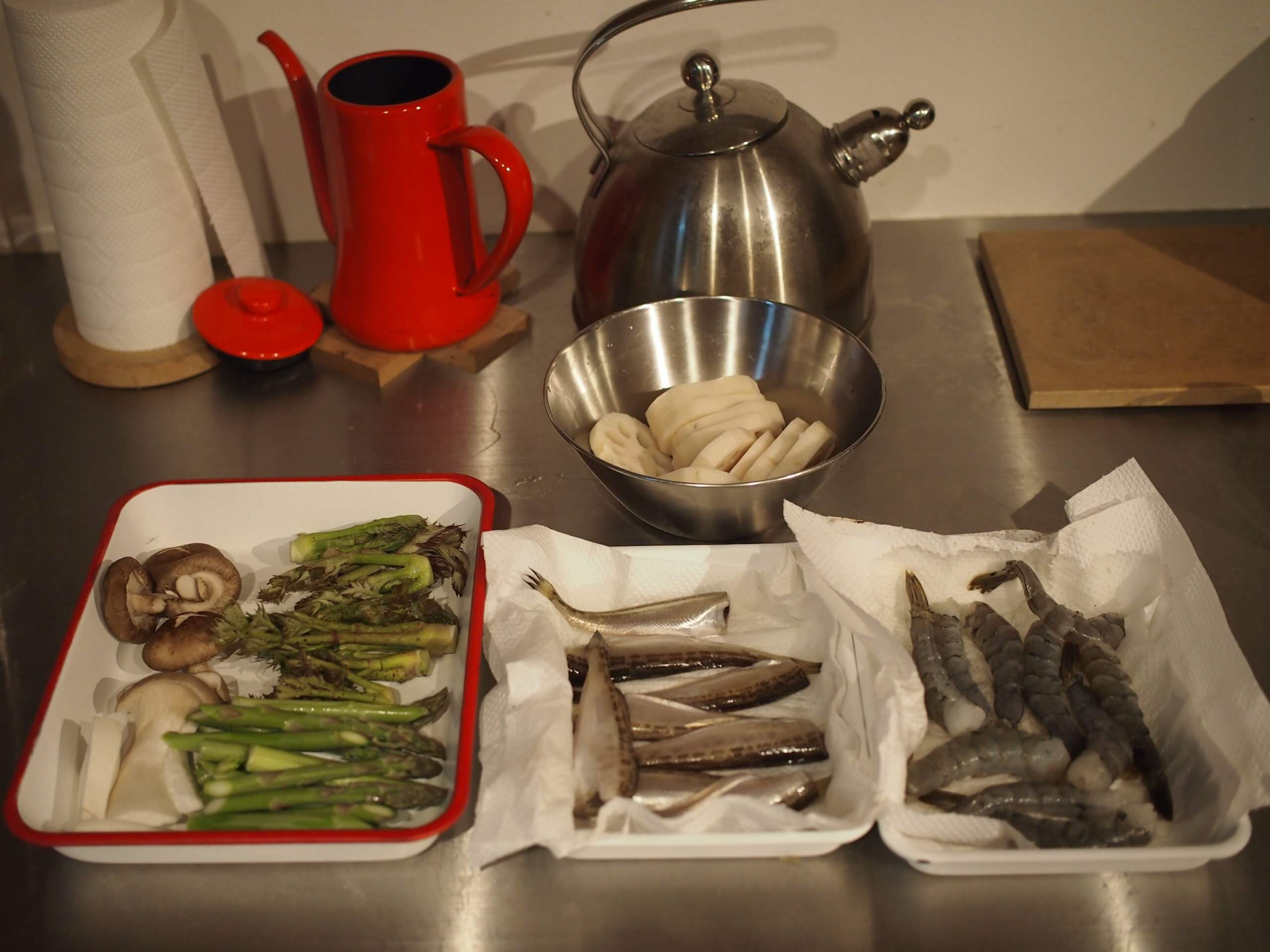天ぷらは、私が下ごしらえをして、