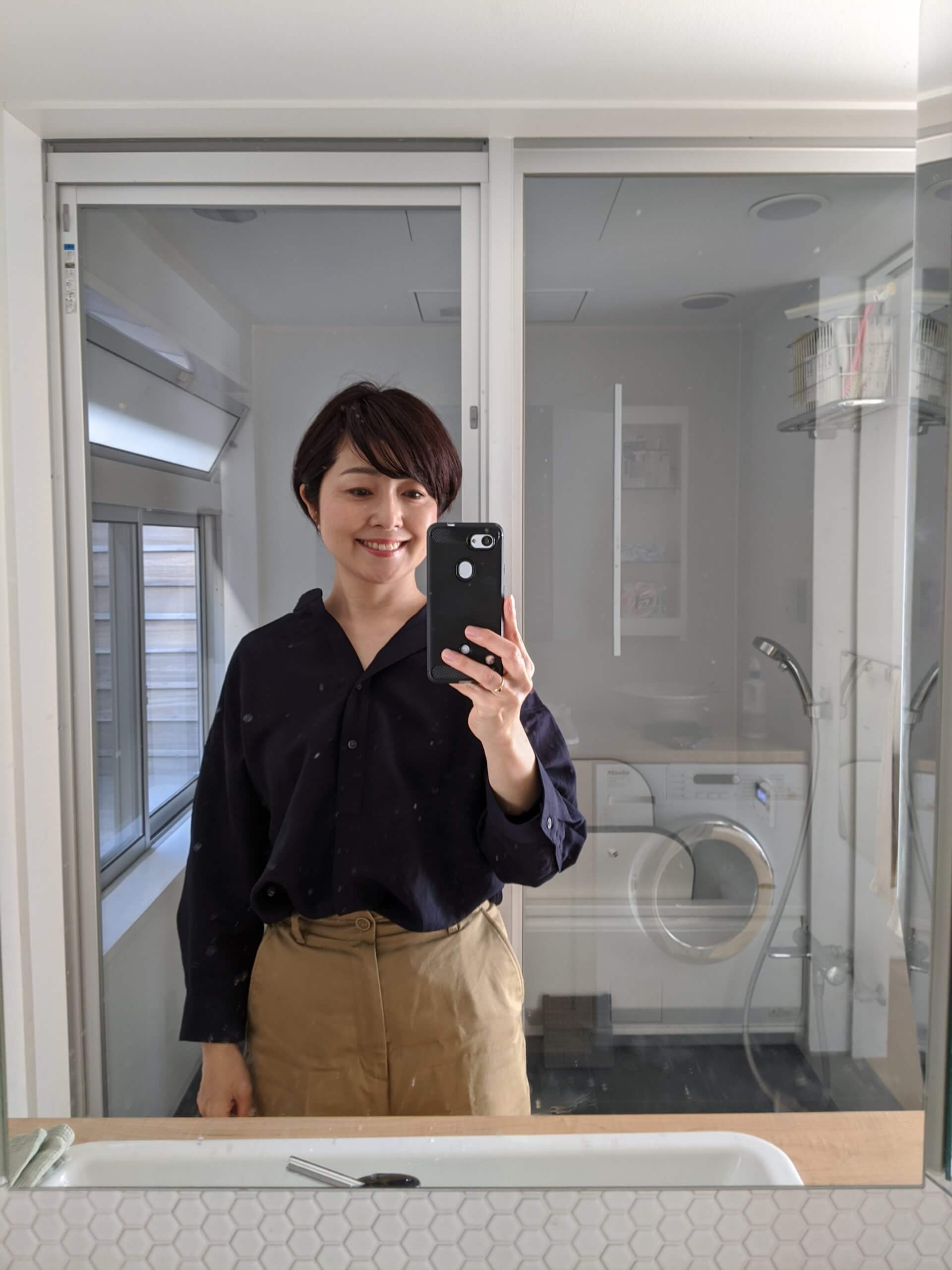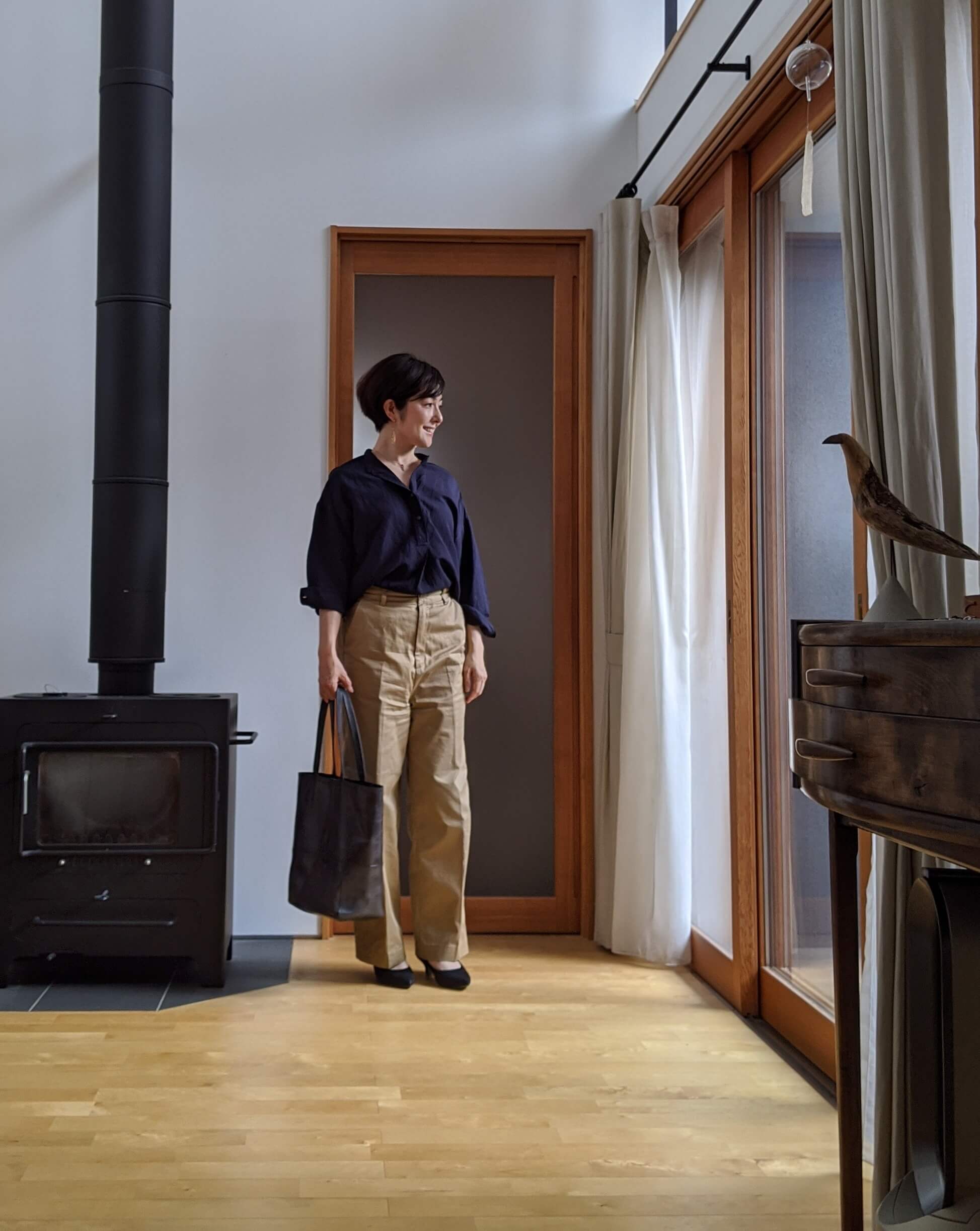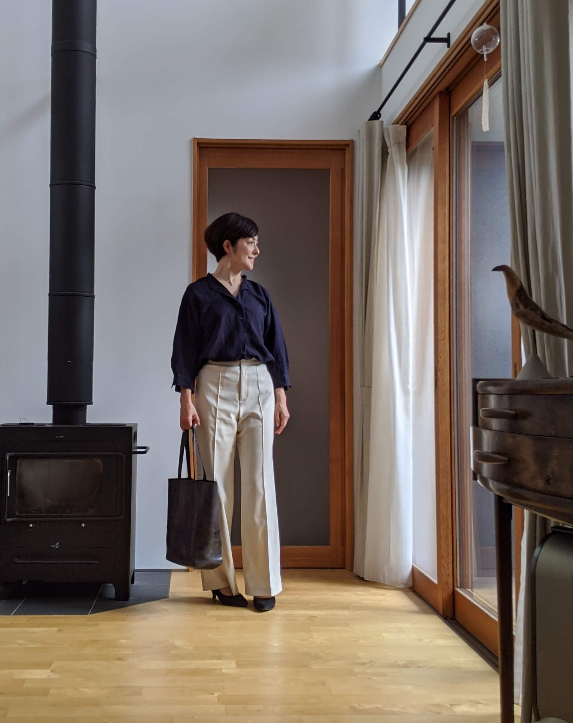 エアコンが効き始めると、袖がある方が冷えないので、夏の職場でも着れるかなぁと、思っています。パンツもUNIQLOのハイウエストパンツ。これも100人隊のみなさんのpicを、見てネットでポチり。色違いで紺色も買いました笑。