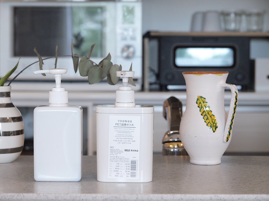 キッチンの洗剤を無印良品の詰め替えボトル(写真左)に入れて使用していたのですが、