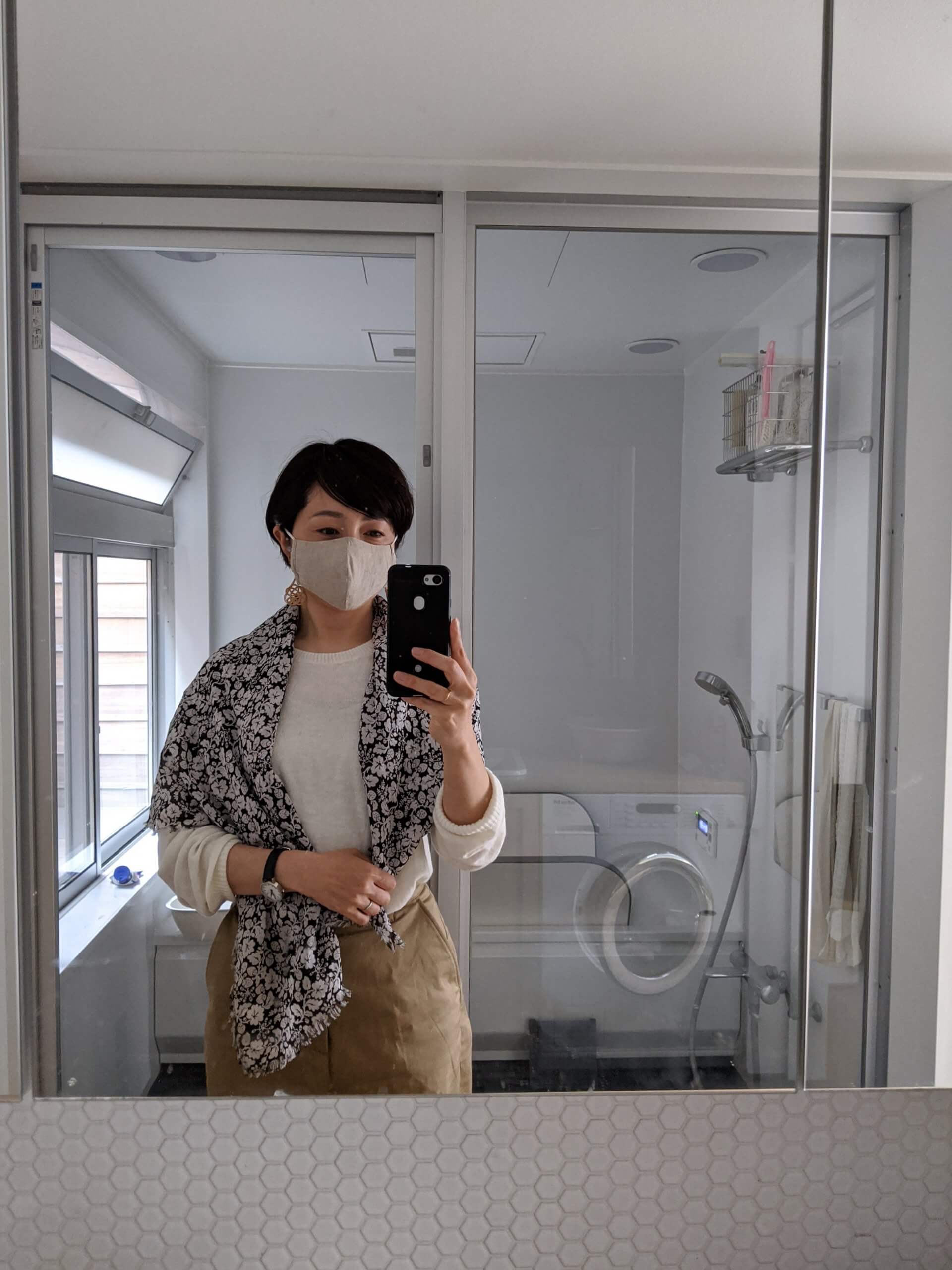 外出の時は、リネンで作ったマスクをしています↓