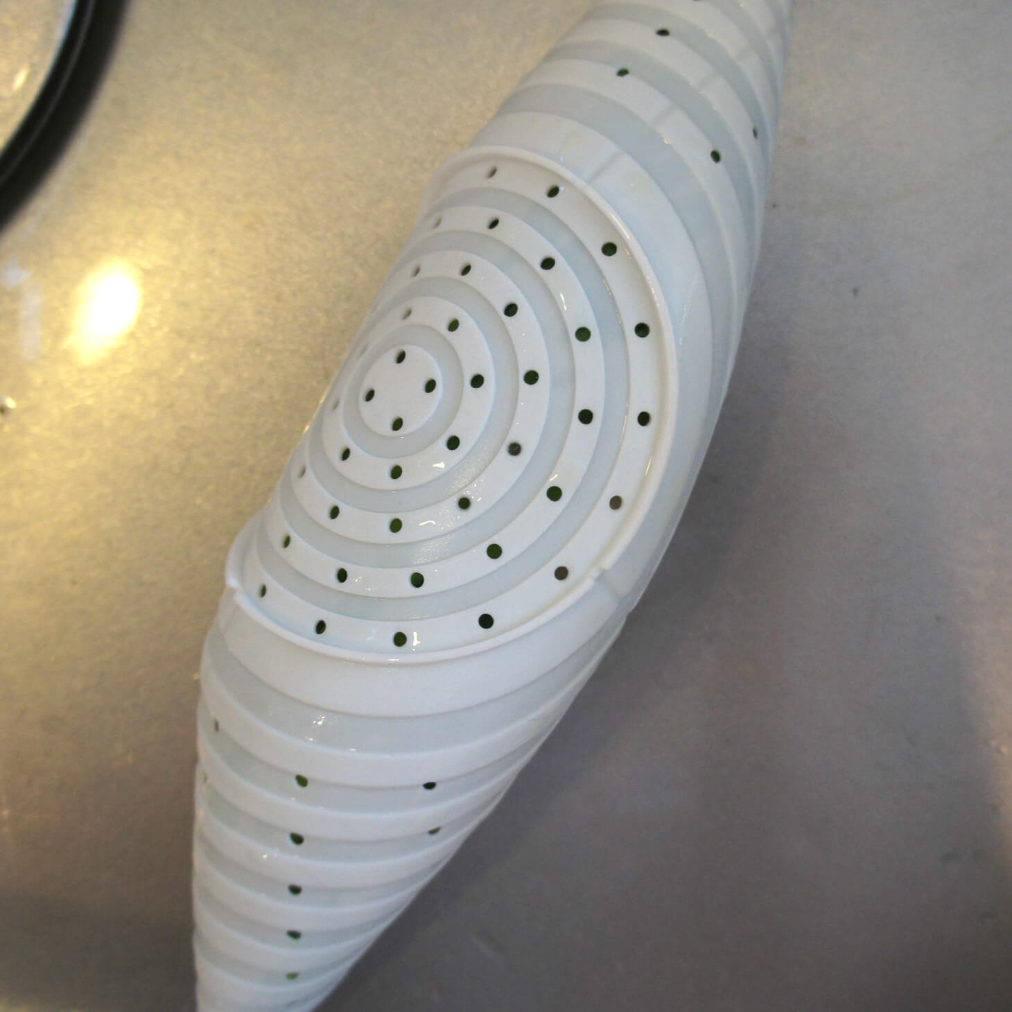 ざるごと絞れて、水分は穴から出てきます、シンプルで洗いやすいのも◎