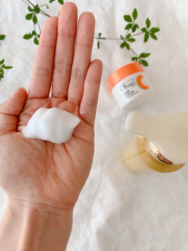 泡立てられた洗顔のオバジXブーストムースウォッシュに、オールインワンのオバジCセラムゲル。ラクしたい時に最高の組み合わせで気に入っています。
