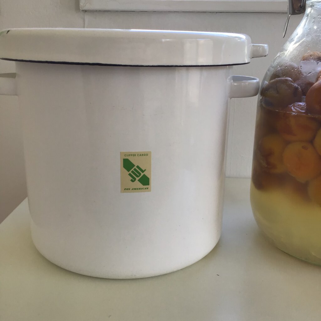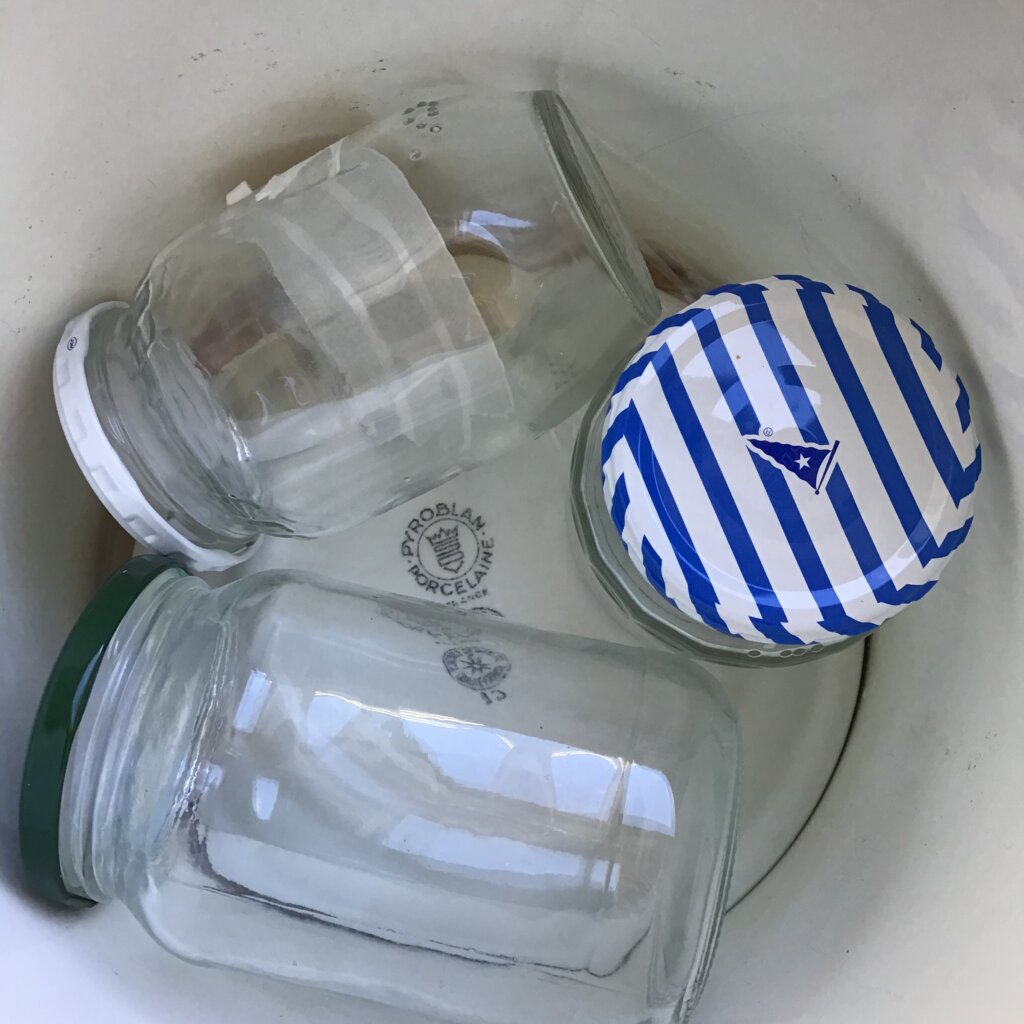 重石もジャムの空き瓶で簡単に。梅酢も黄梅だとすぐ上がってきますー。
