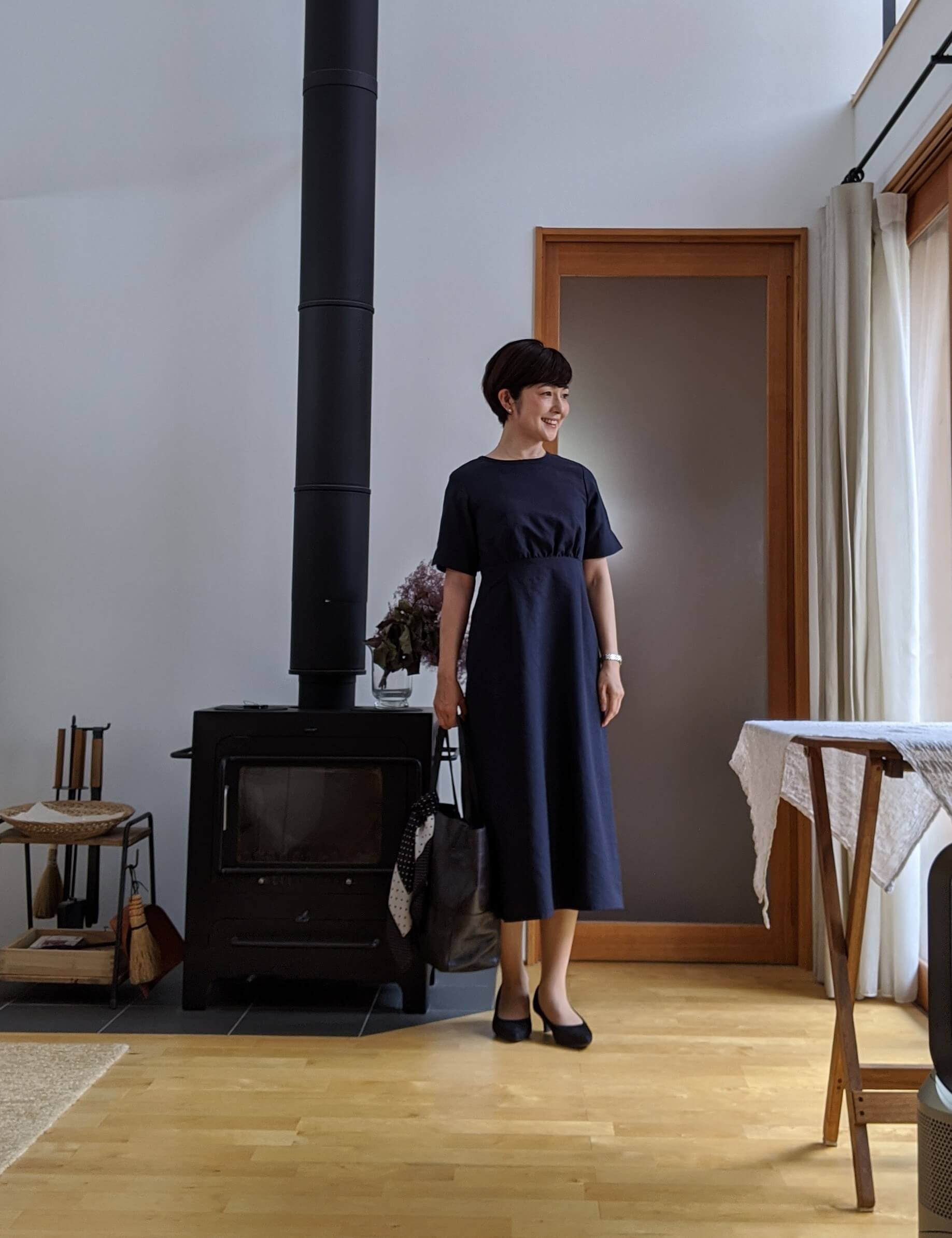 もう一枚、お茶の行事や式典等少し改まった場所にも使えそうな、袖付きワンピースが欲しくて、こちらは、シップスで買いました。