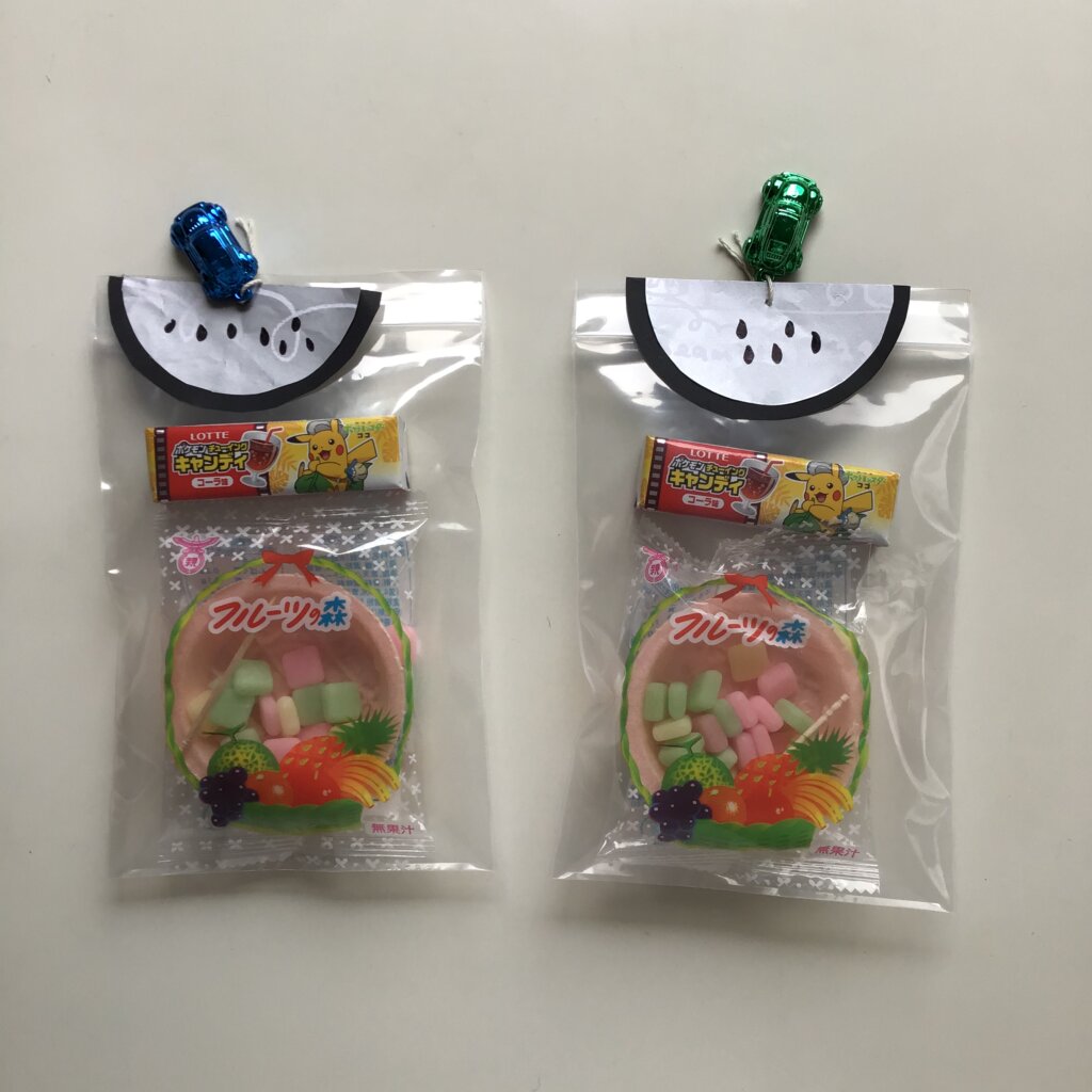 余ったスイカで子供たちにお菓子。毎年飾り付けを作るのも大変だから