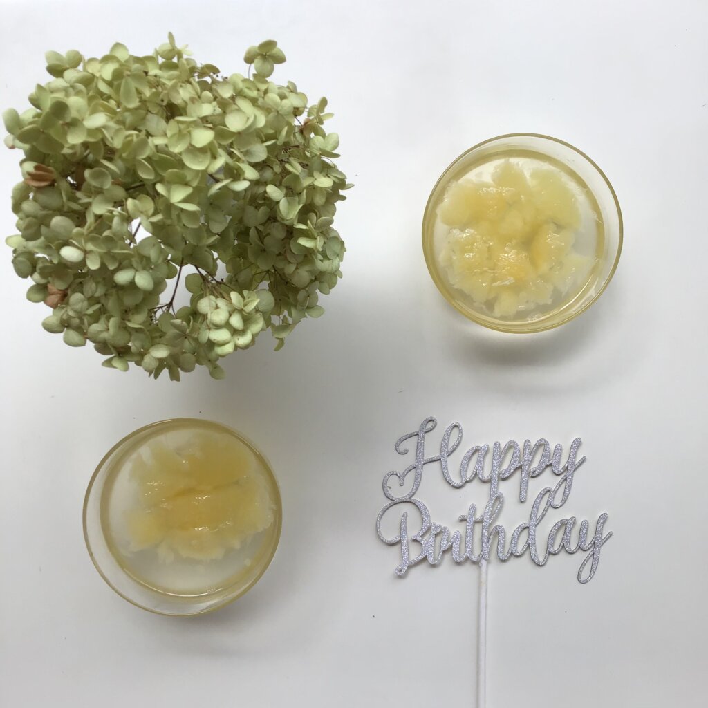 前沢さんのメニューでは、すだち羹だったのですが グレープフルーツシロップがあったので、グレープフルーツ羹 にしてみました。別の日に作ったグレープフルーツゼリー。