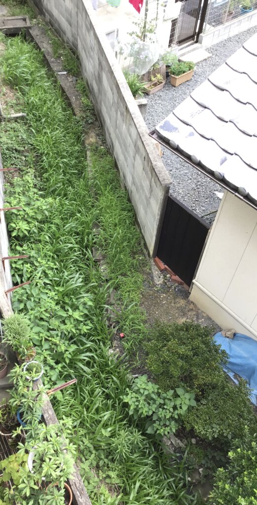 この出口も入り口もない水路?は外からは全然 見えず、私有地ではないのですが、ここに面してる 住民たちで、定期的に草刈りをするということに なっております。しかしお仕事やらお年を召されたり なんだり、現在のところ刈ってるのは私だけ 。。?