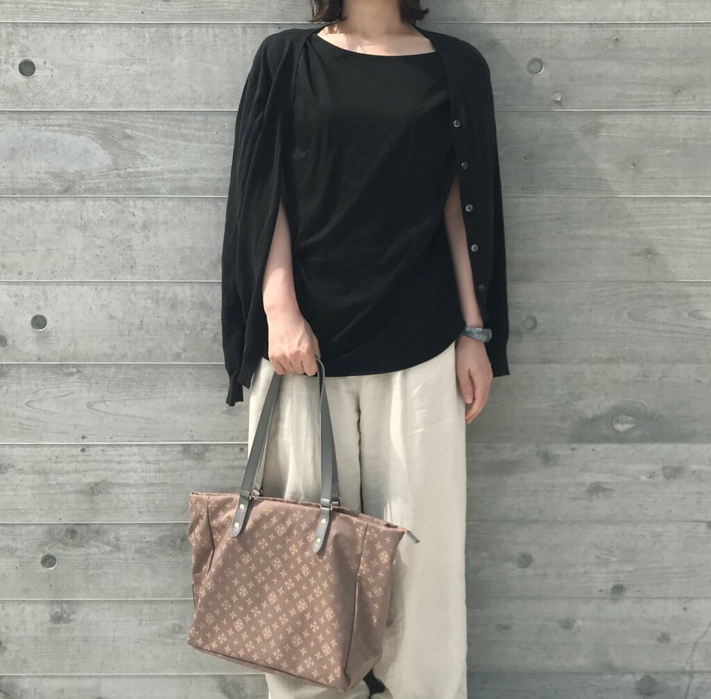 カジュアルなコーデもくすみピンクのようなモカ色とモノグラムのおかげで少し上品に仕上がる気がします。