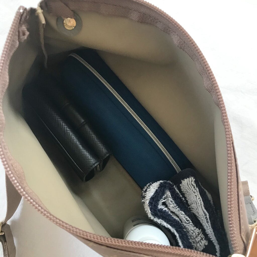 財布・眼鏡ケース・ハンカチ・消毒液を入れるとこんな感じ。