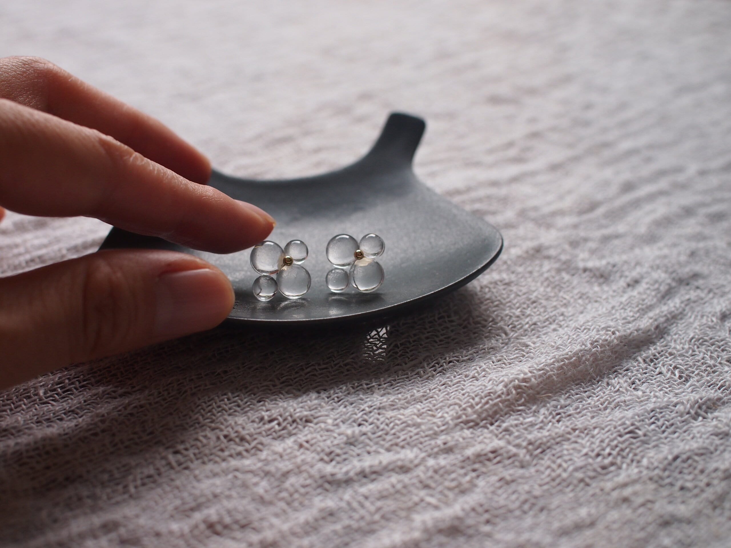 ガラスといっても、とても軽くて扱いやすく、もう少し大きなタイプも着けたくなってます。