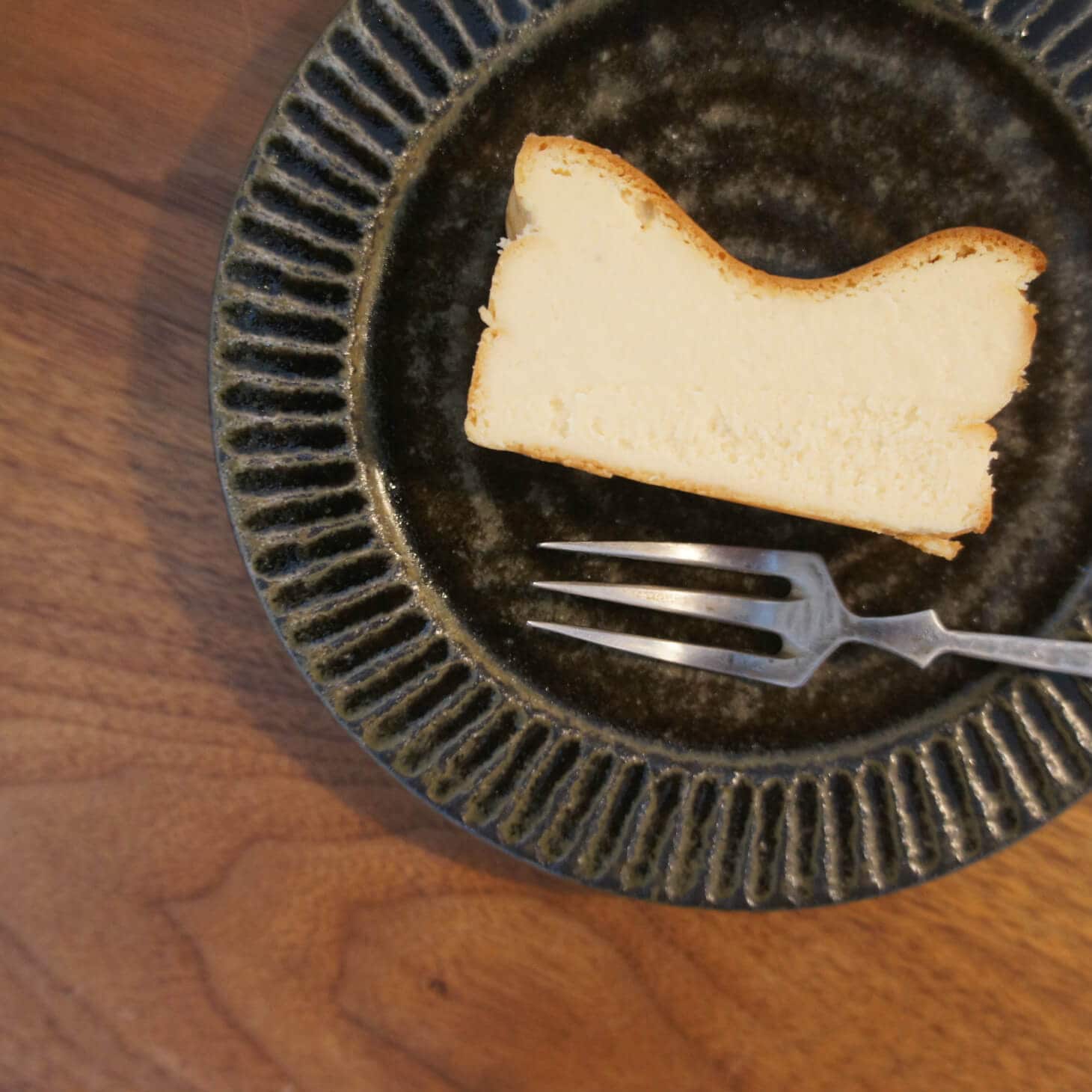 上部?がちょっと凹んでいて、とにかくシンプルなチーズケーキ。
