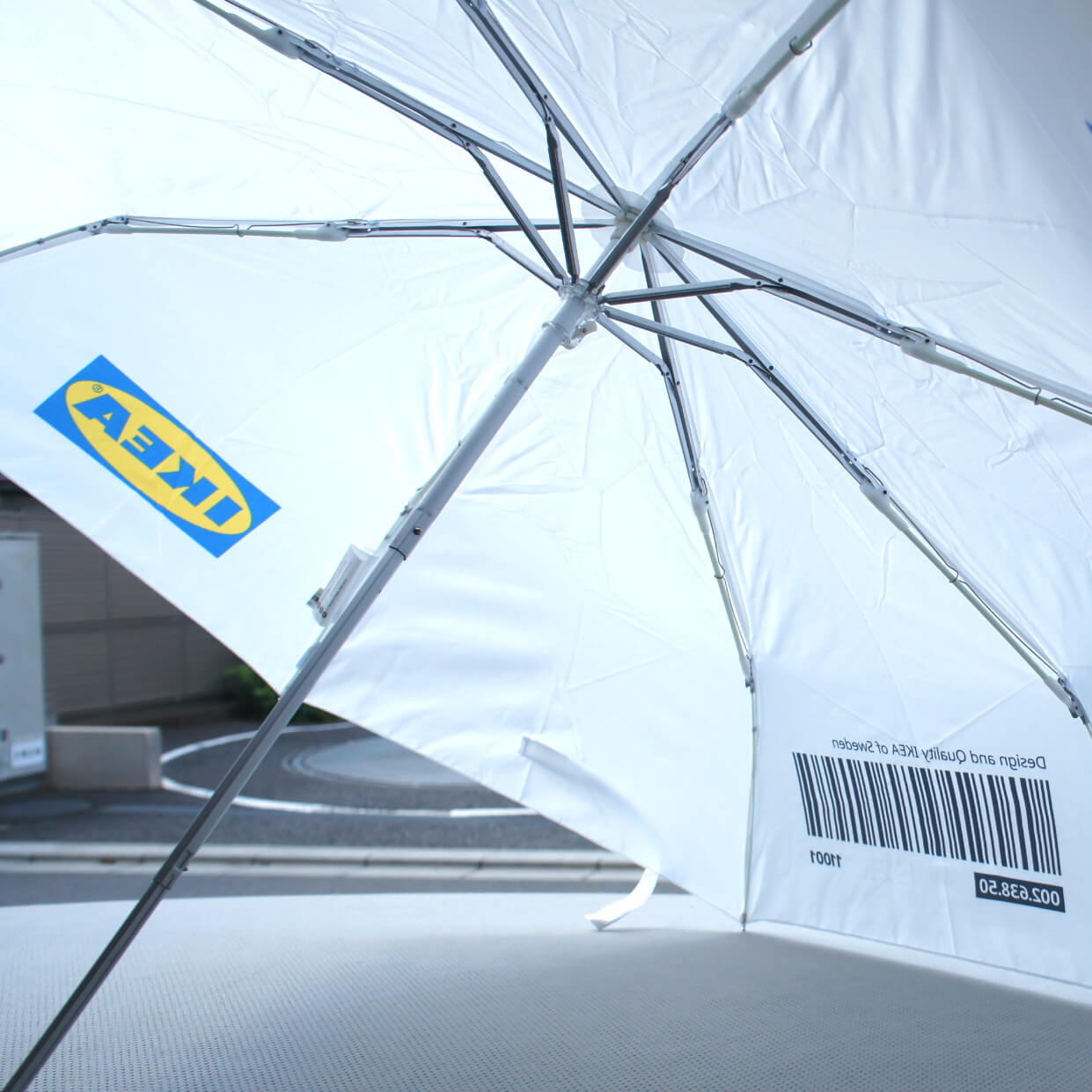 折り畳み傘にも、このロゴとバーコードが。