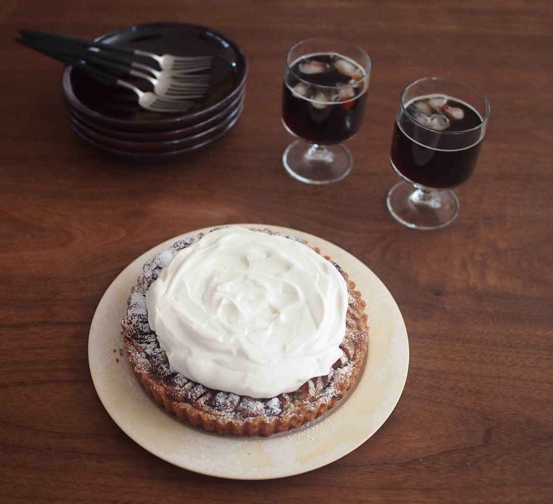アイスコーヒーと、ブランデーを少し入れた生クリームをたっぷりと乗せたバナナタルトをおやつにした日は、子ども達にも好評で、嬉しかったな。