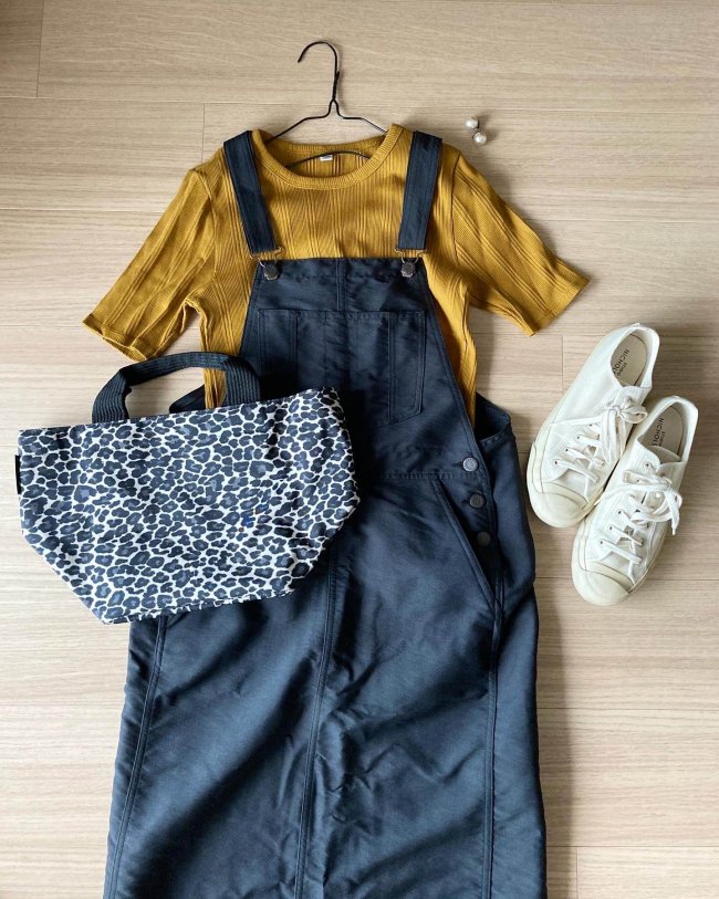 そのかわりバッグはキャッチーな柄の物を合わせて