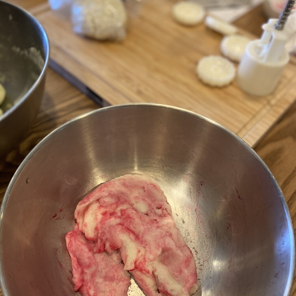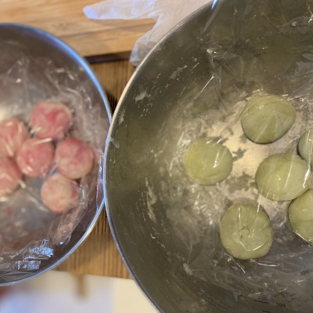色は自分たちで用意。今回は抹茶パウダーとビーツの搾り汁を使って色付けしてみました。