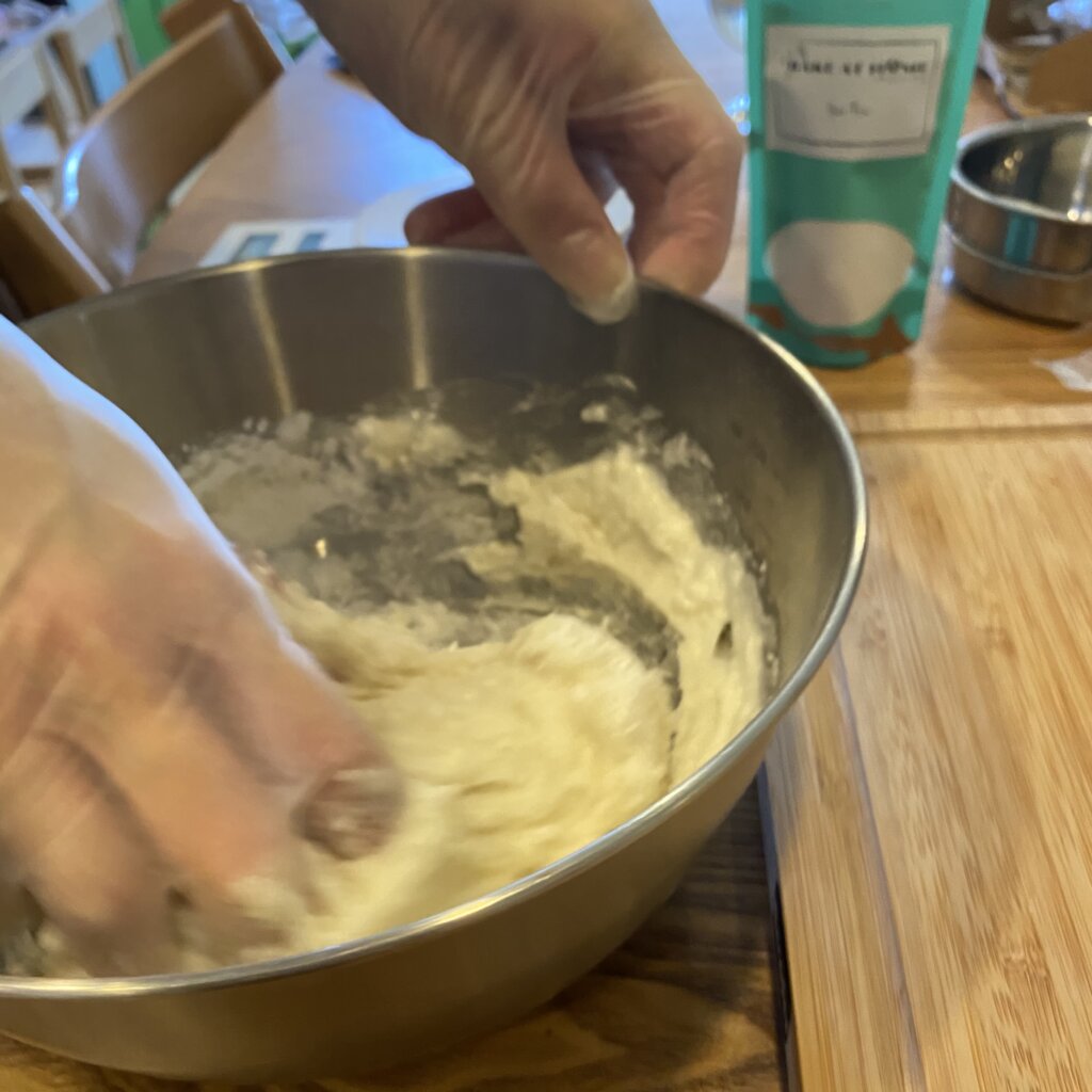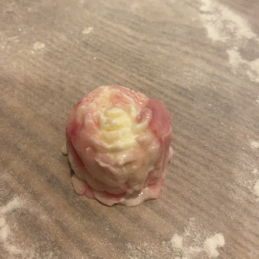 生地だけ余っていたのとプールから戻ってきた子どもたちが作ってみたいと言ってくれたので、アイスクリームを入れた雪見だいふくバージョンに挑戦!