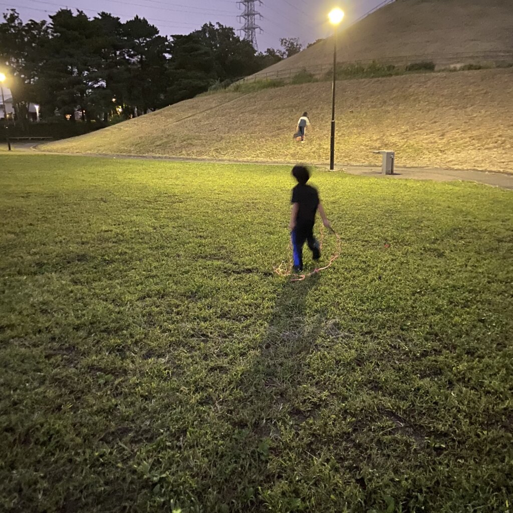 セリアで縄跳びを家族分、買ってきて早速チャレンジ。