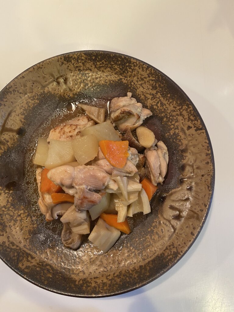 かつおだしで材料を煮て、万能だれをかけただけ。
