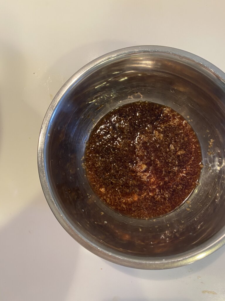 しょうがのすりおろしに、万能だれを投入して、しょうが焼きのたれを作り