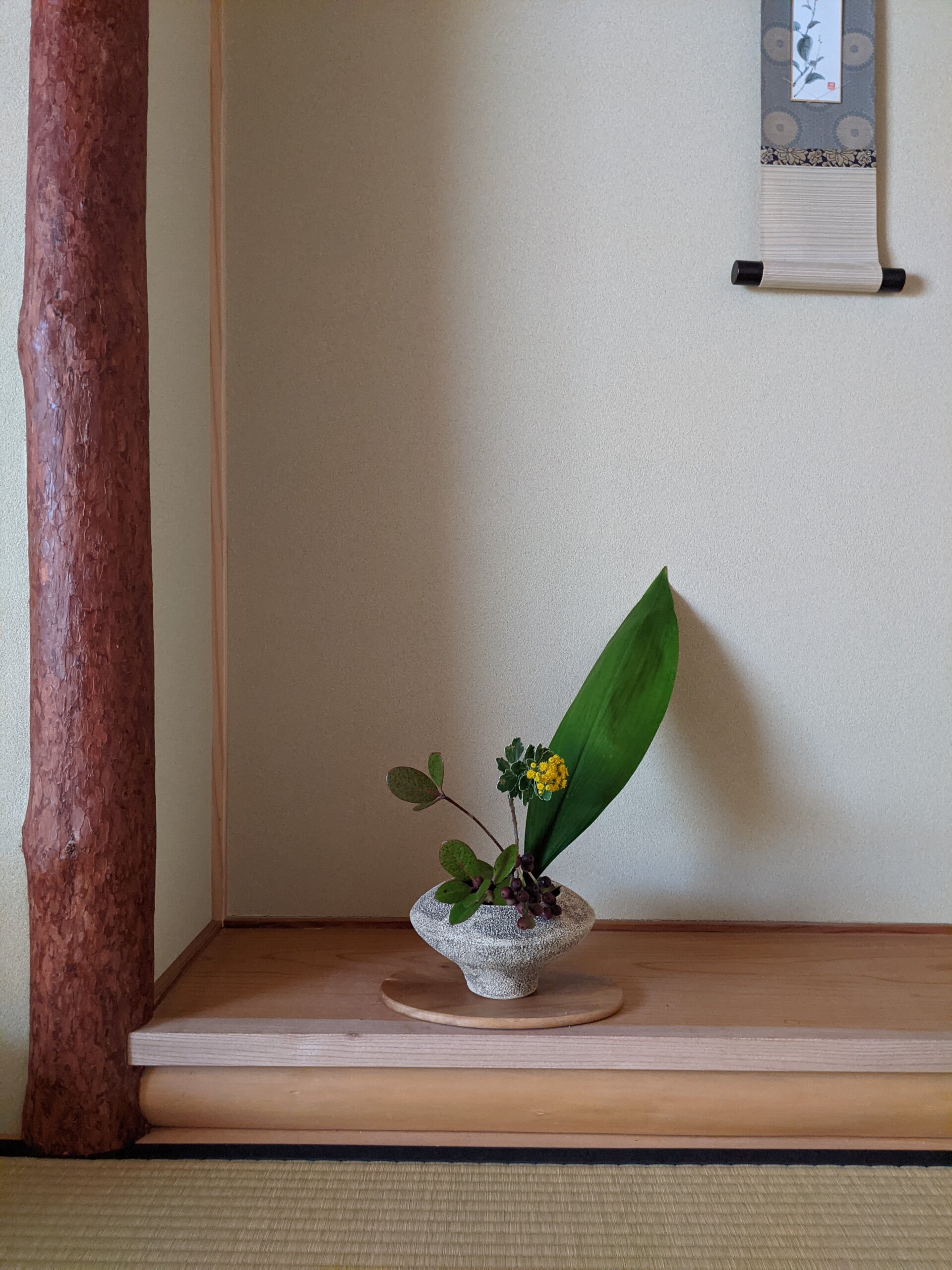 花入れは、花留めも付いていているので、低い花器でも活けられる、気がします?