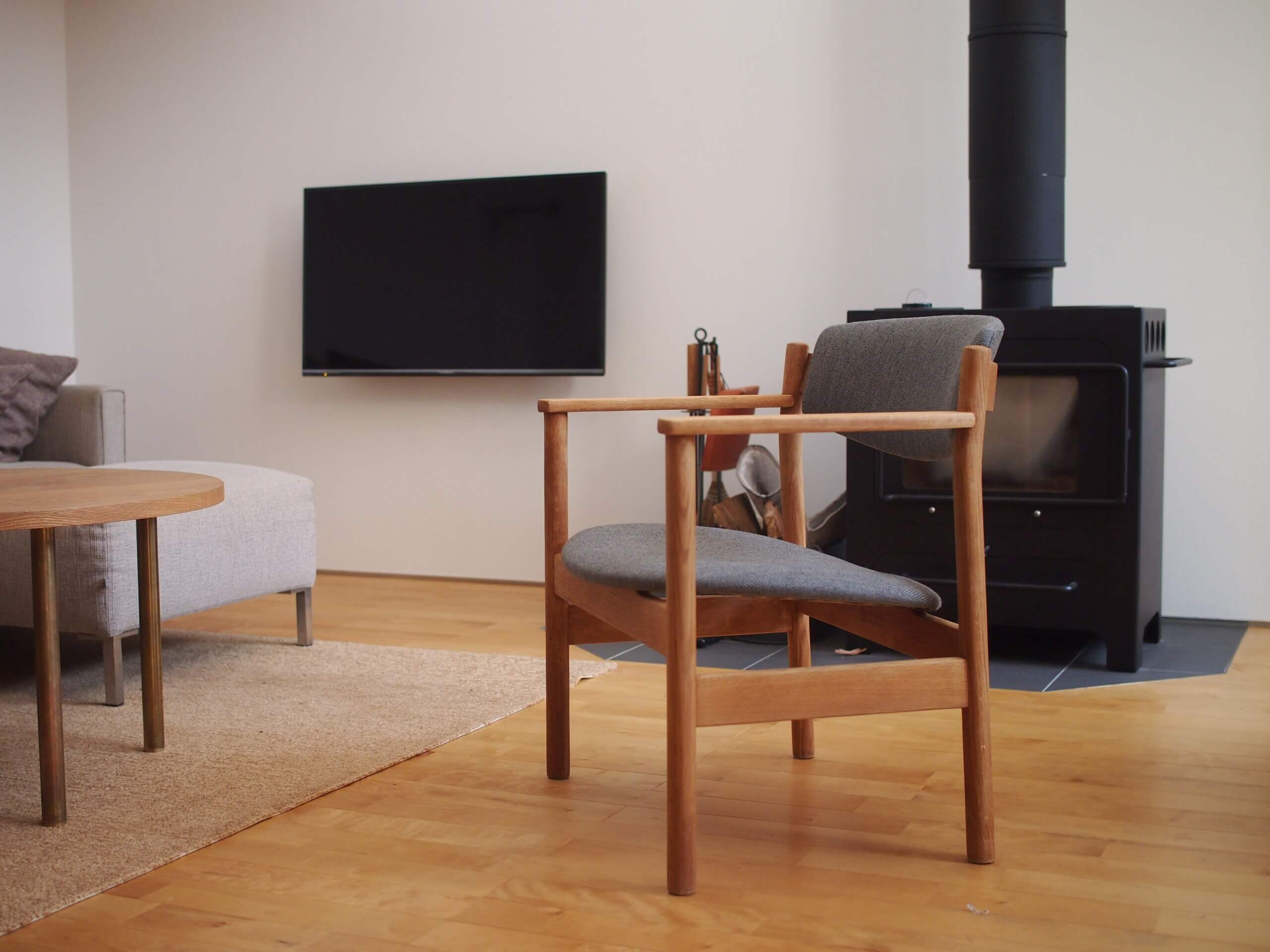 福岡 TRAMさんのオンラインショップで購入したこちらのイージーチェアは、Jorgen Baekmark社のアンティークのもの。
