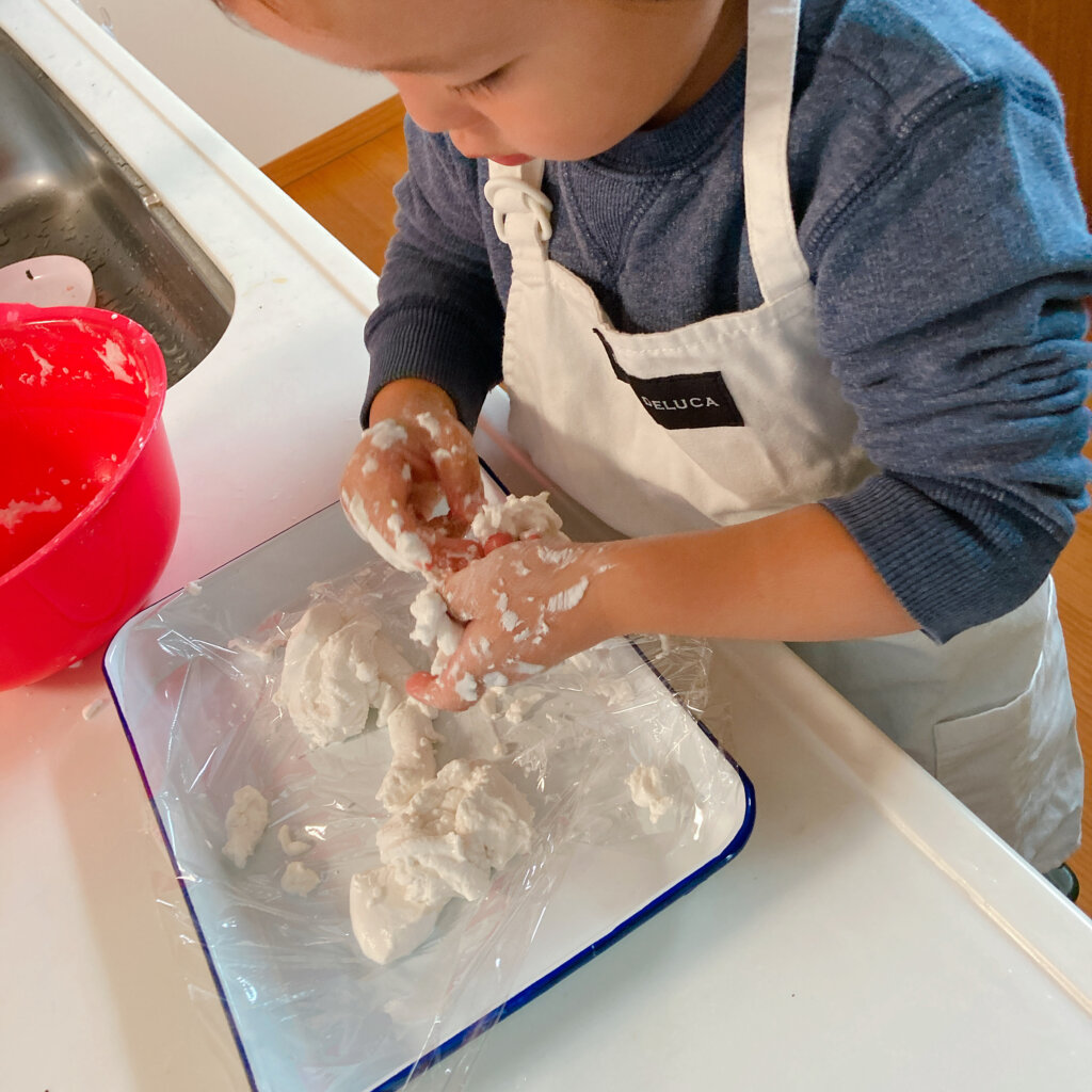 途中から「ママ、ねんど遊びたのしいねっ!」とのこと。食べ物だよ~~~笑