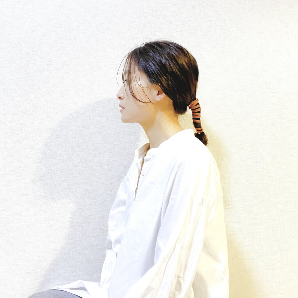 このアイテムは今の長さだと一つ結びよりもハーフアップの方が私的にはしっくりきます◎