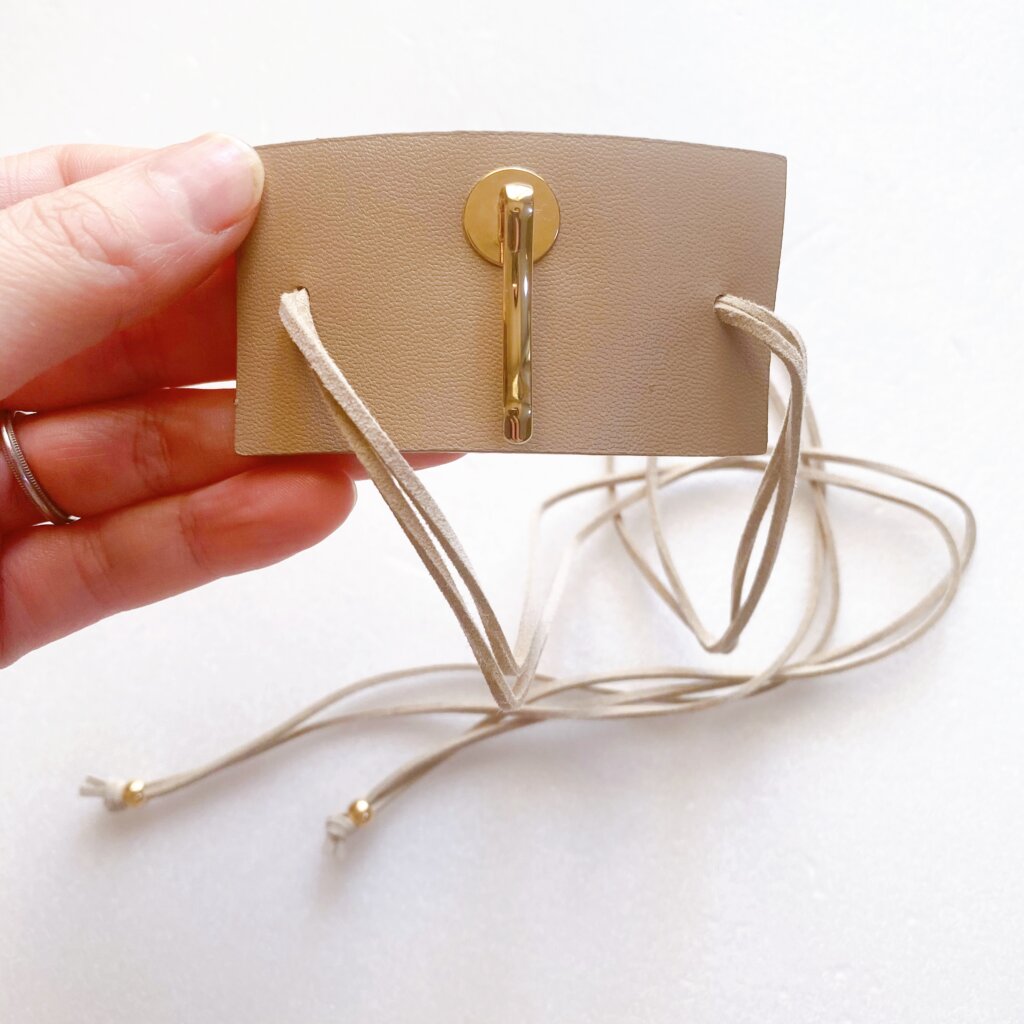 ひとつ結びにひっかけて付属の革紐をくるくるとまきつけただけ。