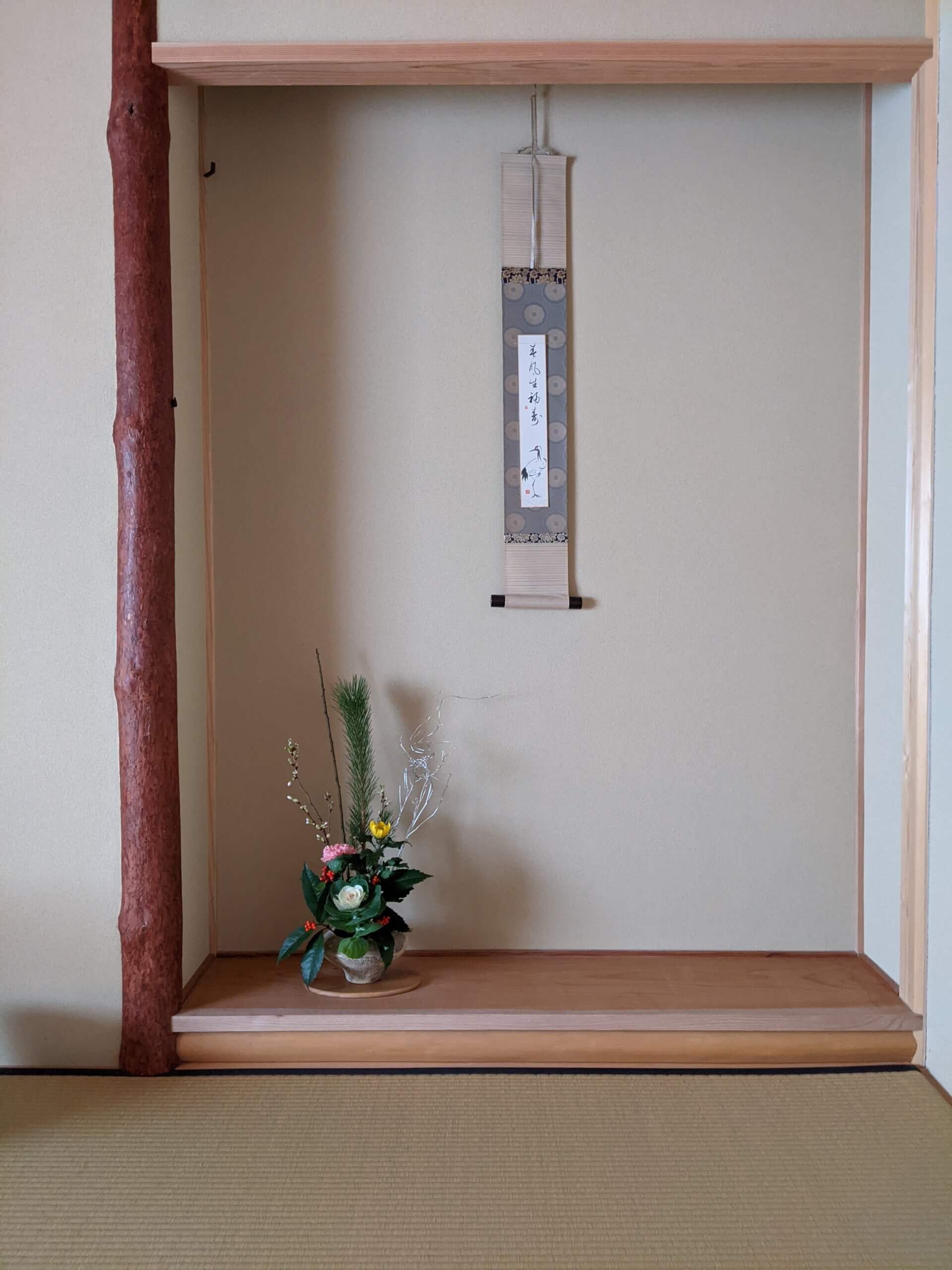 玄関の中は、叔父から届いた、山形の啓翁桜を飾りました。冬に咲く桜です。届いてから少しずつ、開花していくのを見るのが楽しいです。