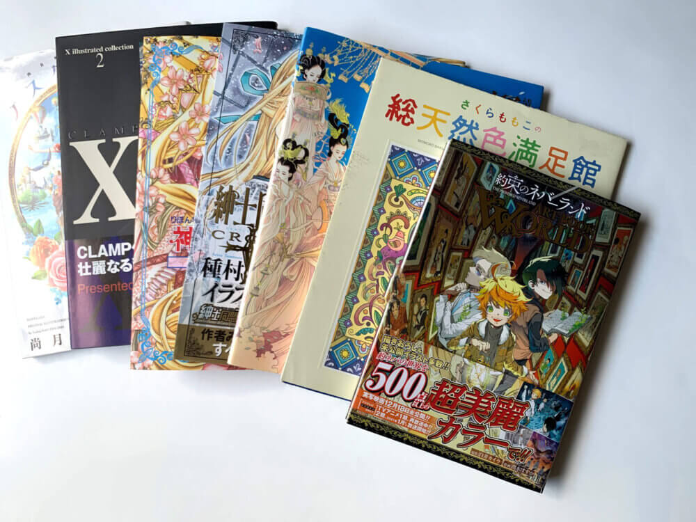種村有菜さんの画集が2冊も…。(大好きなんです…)清水玲子さんの『輝夜姫』の画集とかCLAMPの『X』の画集とか尚月地さんの画集、今は絶版になっている、さくらももこさんのちびまる子ちゃん『総天然色満足館』。漫画系の画集はコレだけですが、他にもアルフォンス・ミュシャとかウィリアム・モリスや西洋装飾図録などの画集などなどがあります。