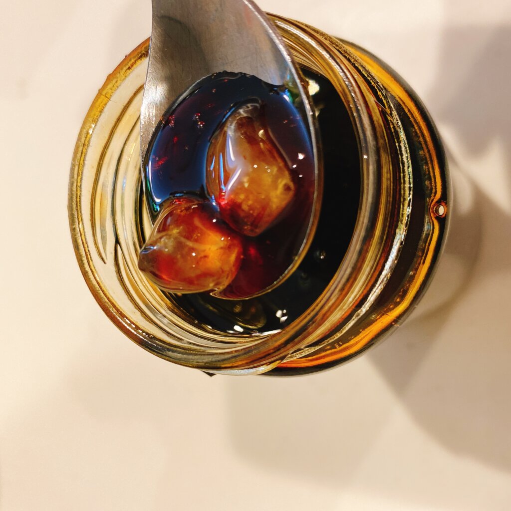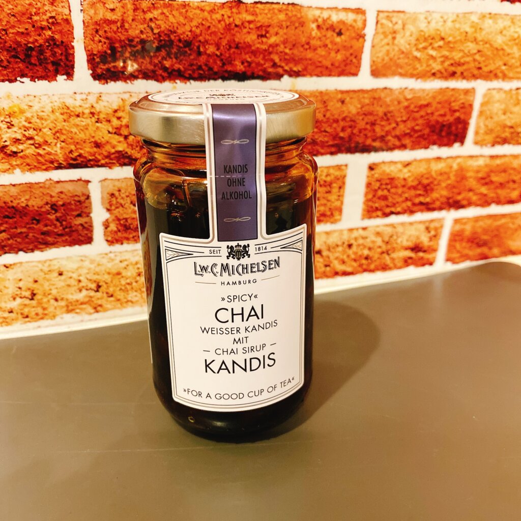 チャイシロップに氷砂糖を漬けたもの。