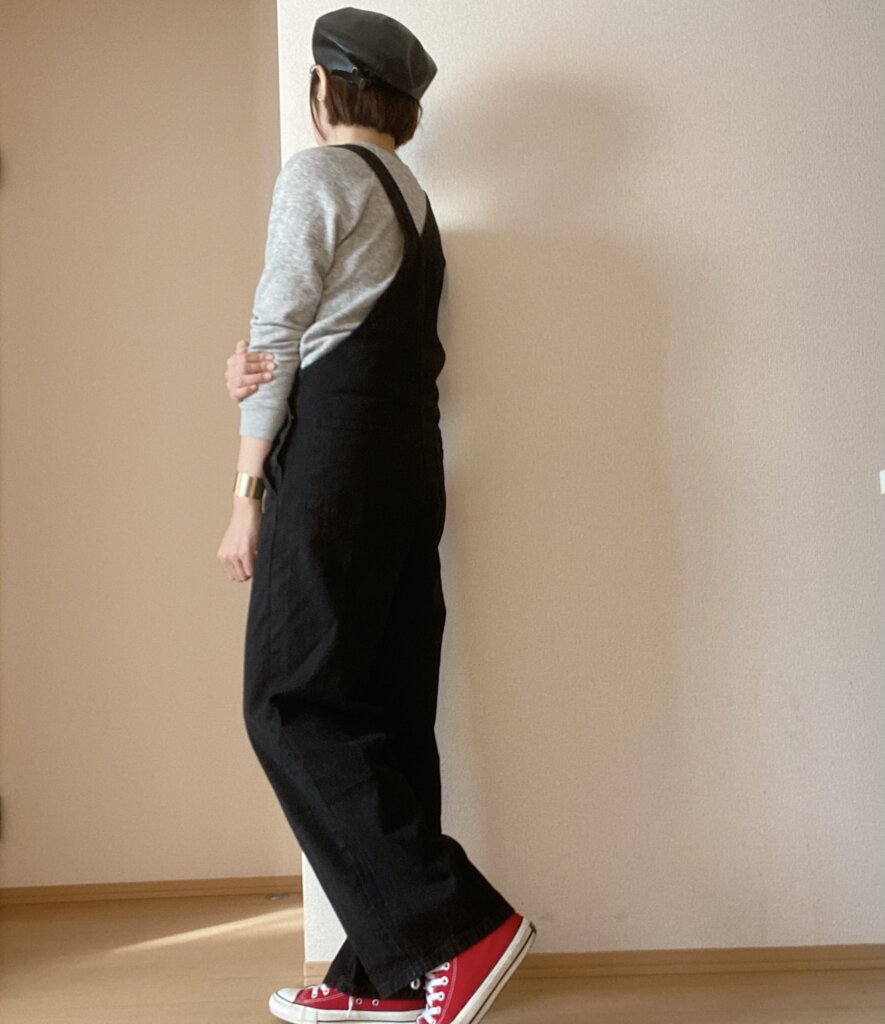 ブルーデニムは私が着ると牧場感が出るかなと悩んでいたところ、のりたまさんの黒サロペットのおしゃれなコーデに釘付けに!←大人可愛すぎました。泣