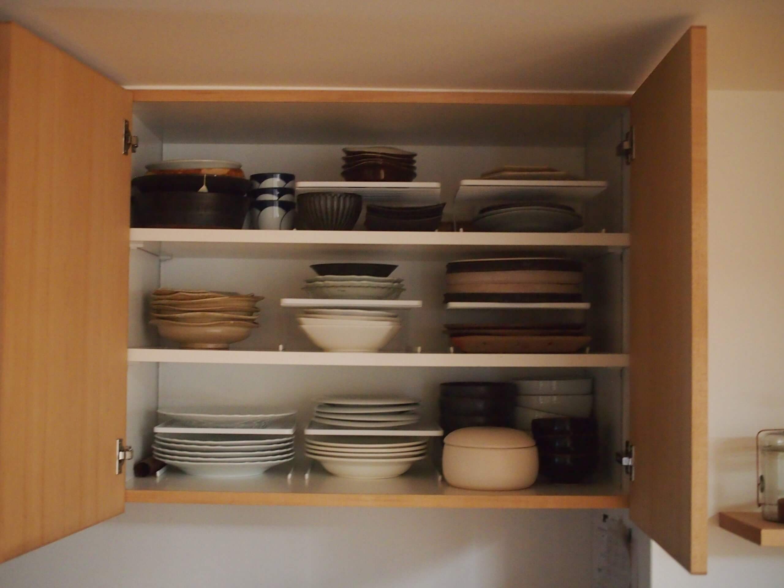 1段ずつで使い、食器棚を整理しました。