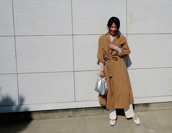 生地に適度な厚みがあることで白でも透けず、落ち感が出る。上品見えのポイントが重なっていたところもとても良かったです。