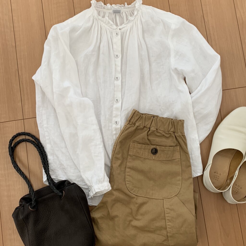 そして、さらに暖かくなったら、ブラウス(a piece of Library)合わせで明るく春らしく足元も白のqueを。