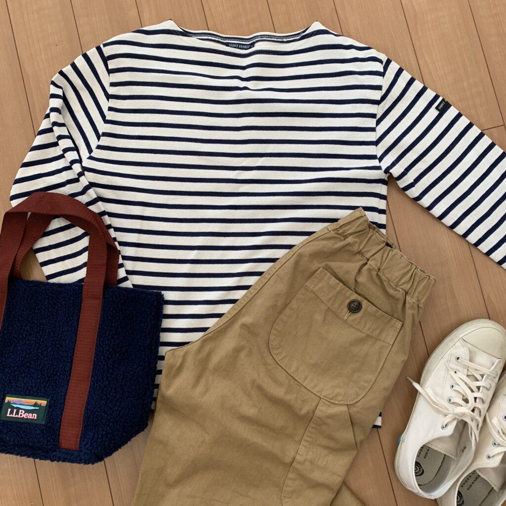 もう少し暖かくなったら、定番セントジェームスの出番かな。ん?この↓コーデどこかで見たような…。