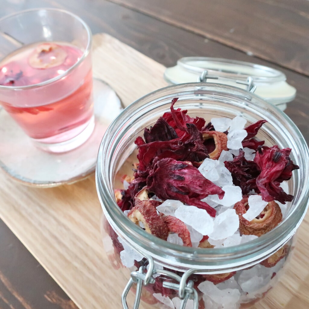 Lovely Dayには洛神花(ハイビスカス)、山査子、氷砂糖がブレンドされています。