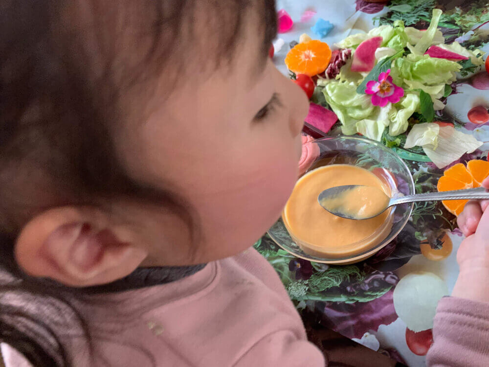 娘には、にんじんの飾り切りの切れ端で作ったポタージュを。