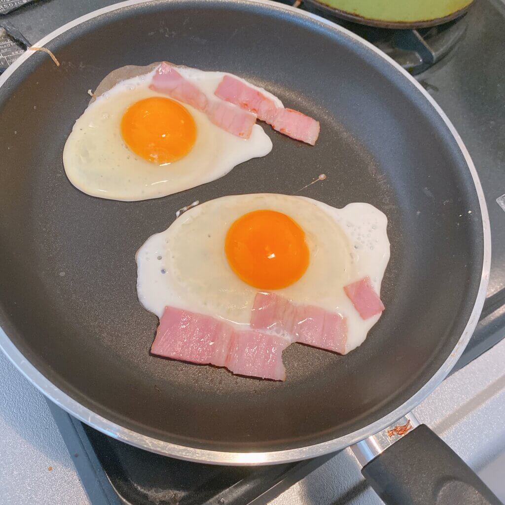 2人分の目玉焼きを焼くのにこの大きさは使い勝手が良く重宝しています♡